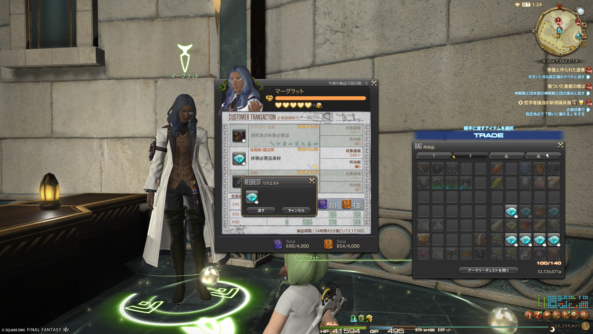 ぼちぼちセントリオ記章を稼いでおこうと、しばらくお休みしていた蒼天エリアのモブハント。転送網利用券がだいぶ減ってきたので、またぼちぼち貯めようと思います。