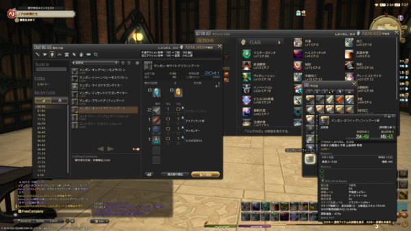 白魔道士はLv87なのに、ずっと足装備がLv80のままだったので、甲冑師のレベルをあげて足装備を作ってみました。