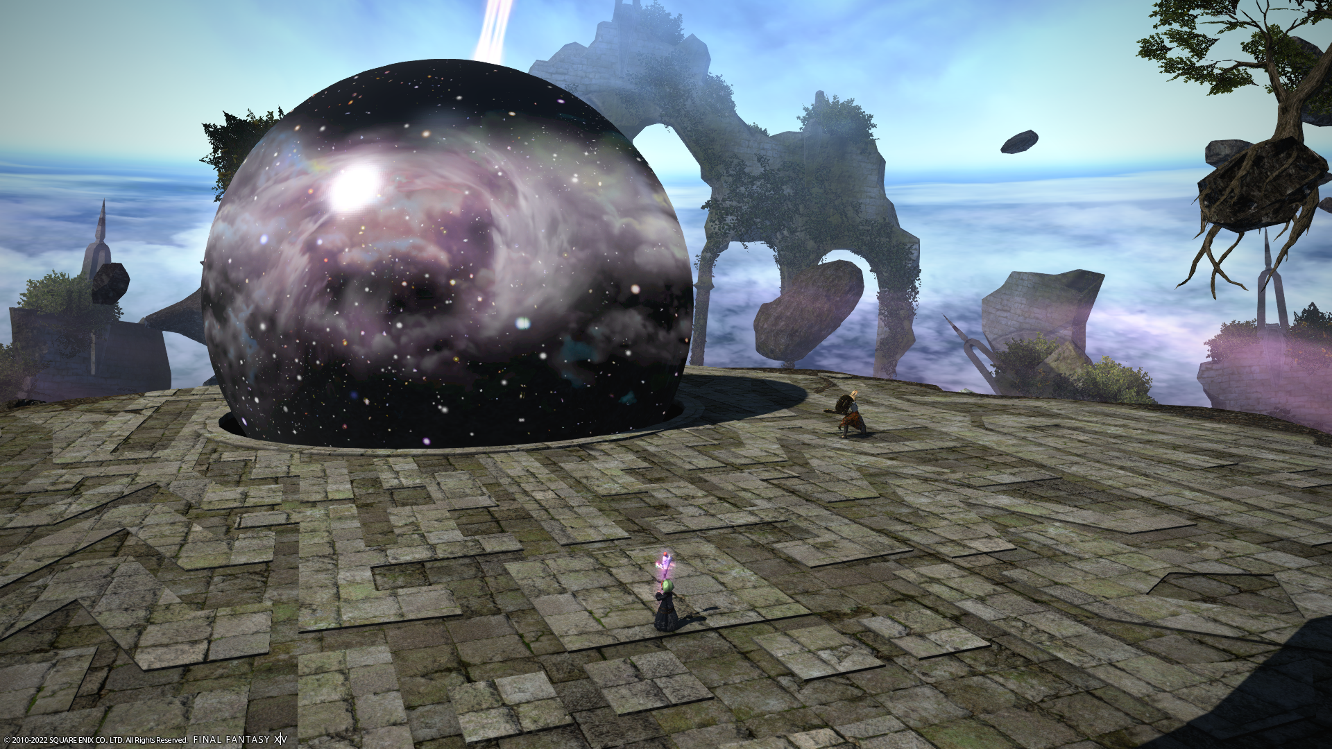 そういえば、ボスの部屋って改めて見ると浮島の上に建っていた建物でした。最初、飛空艇の中にある部屋だと思っていたので、こんなに物があって倒れたりしないかとか思ったけど、浮島なら大丈夫ですね…。