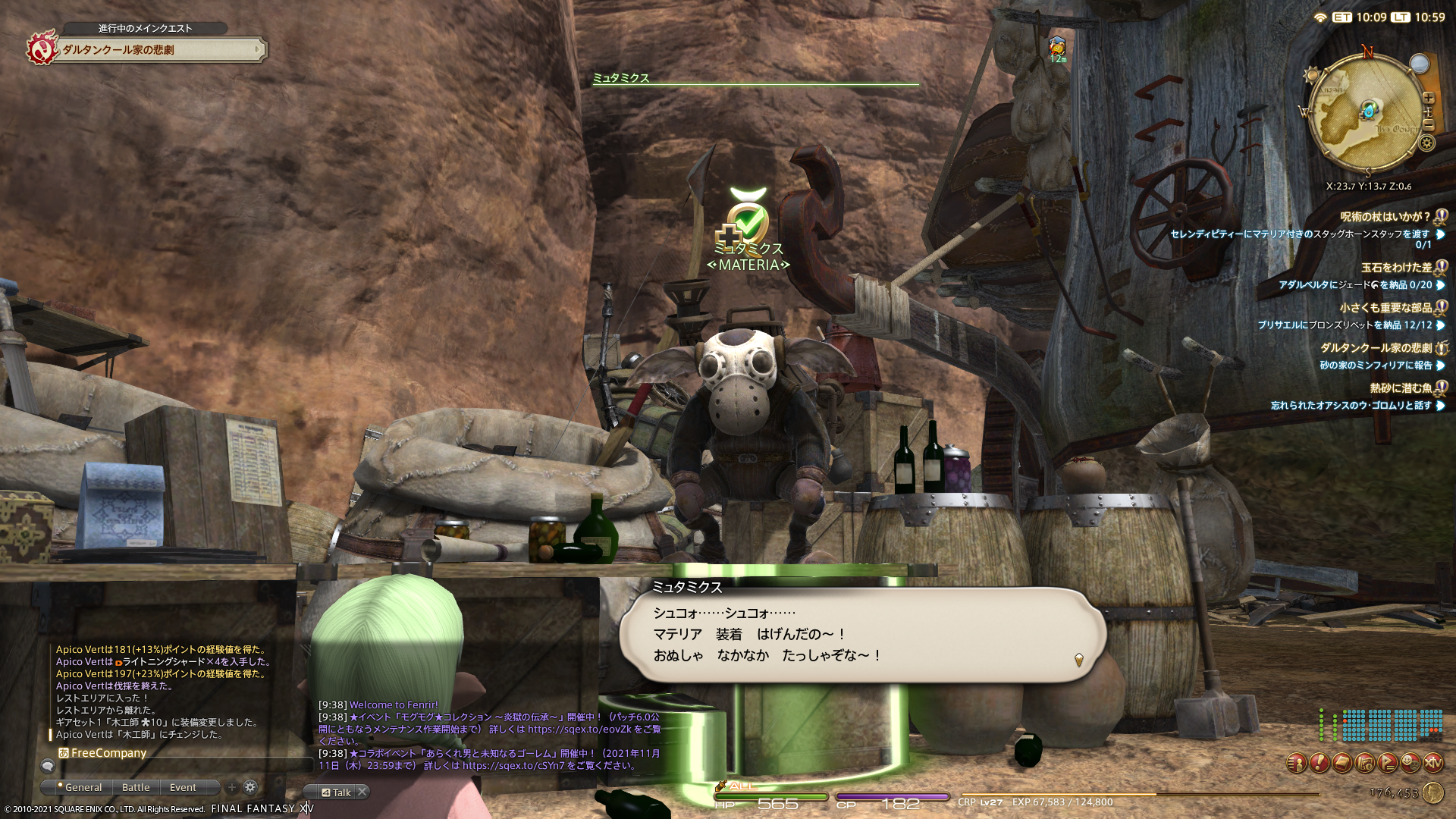前に訪れたときはクラフターレベルが足りなくて出来なかったマテリア関連のクエスト。