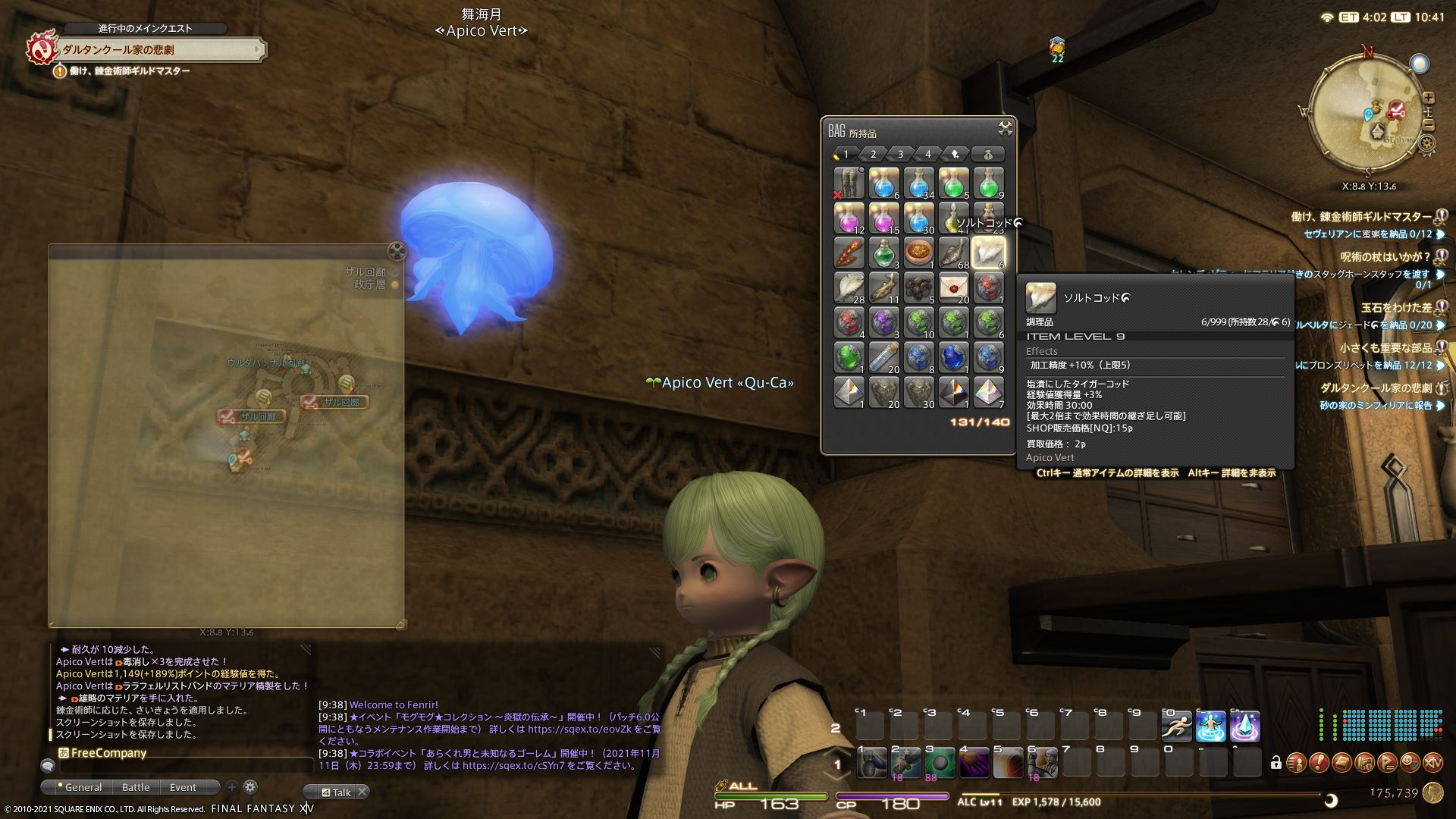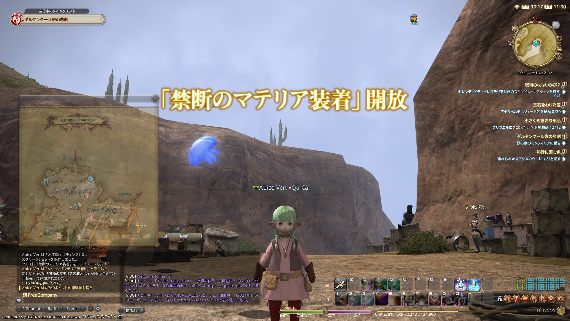 メインクエスト進行が一段落した(ダンジョン突入前まで達した)ので、ギャザラーのクラスクエストなど。