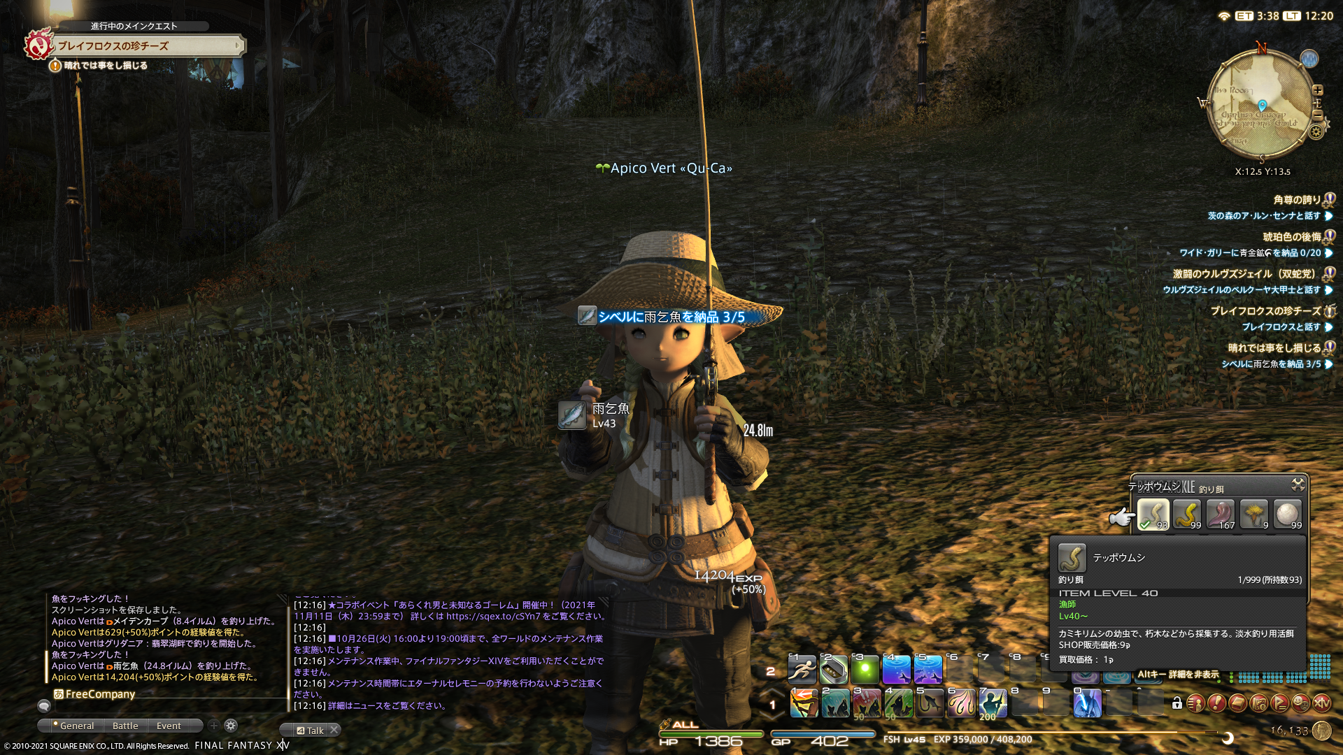 メインクエストが一段落したので、釣りギルドで依頼された魚を釣りにクルザス地方へ。