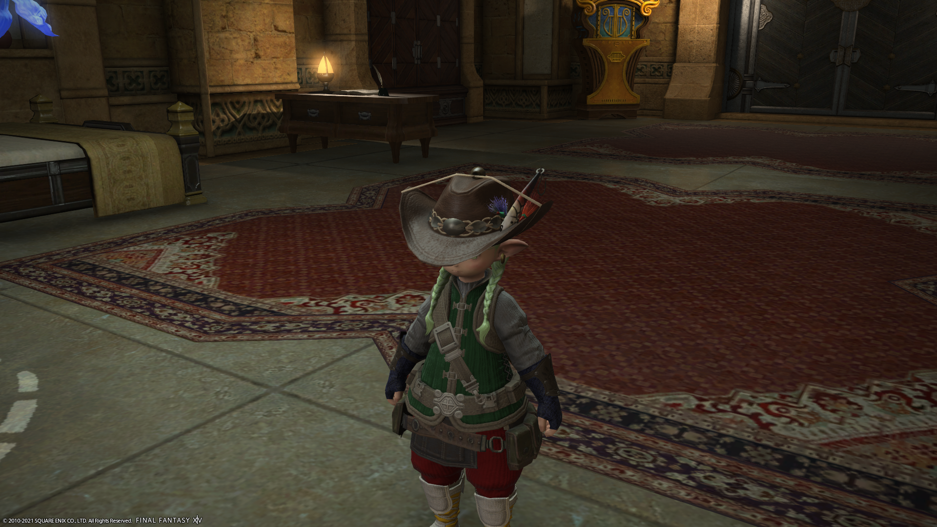 クエストの報酬、好きな装備品をいただけたのだけど、迷って迷って帽子にしておきました。一番雰囲気でるかなぁと思って。