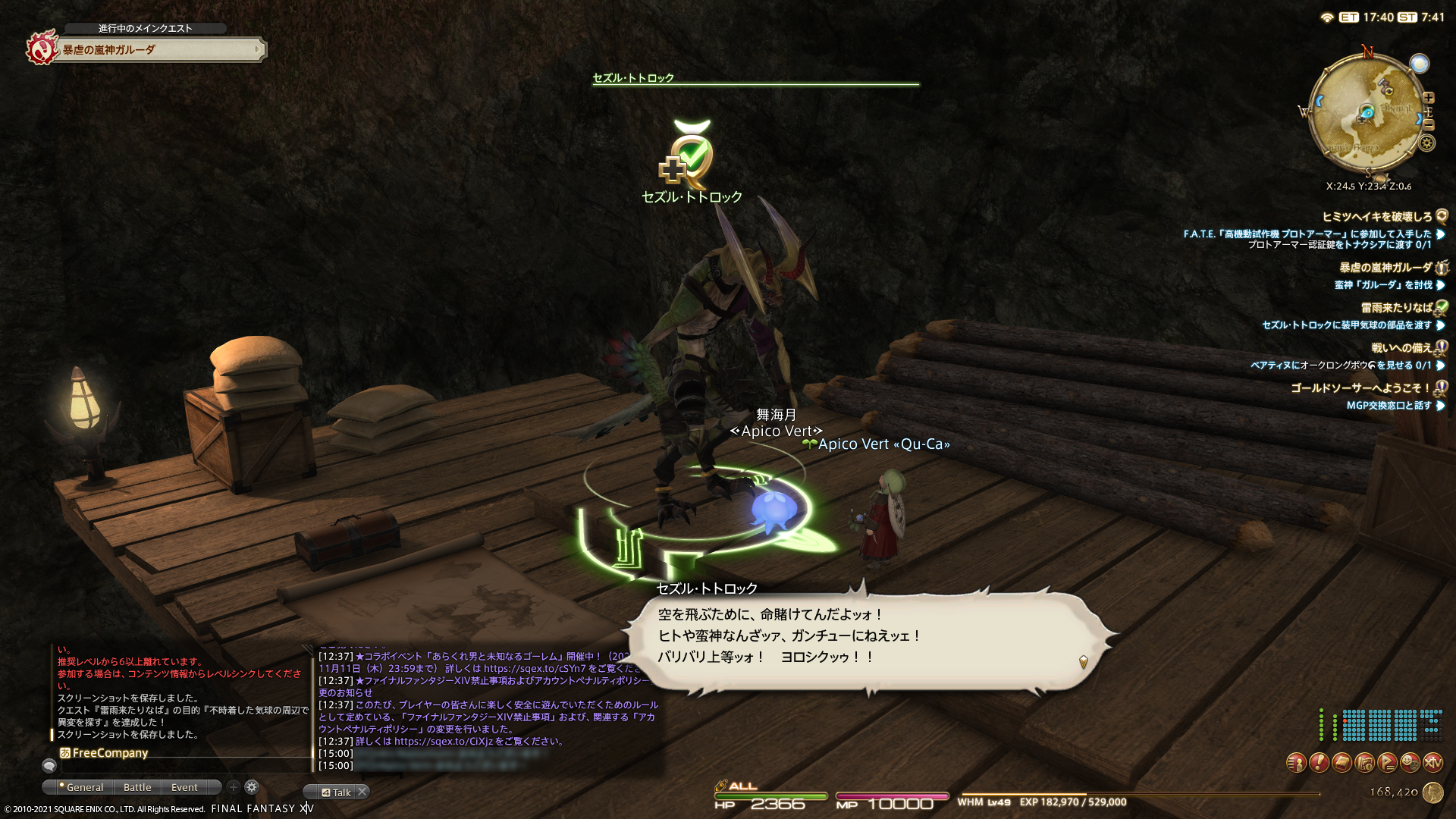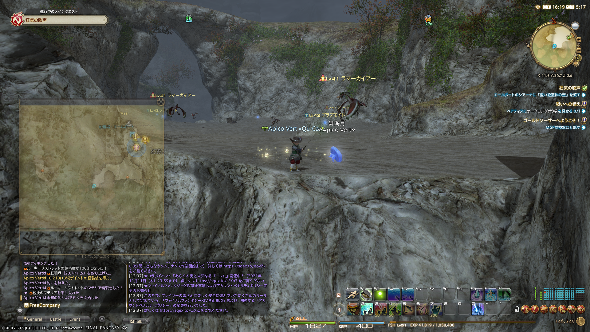 釣り場開拓でちょっと横道にそれちゃったけど、メインクエストのガルーダまで進めることができました。あとはフレさん方頼み(>_<)ヽ
