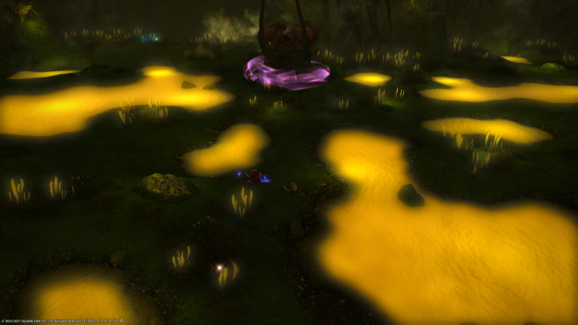 毒の沼にはまって転がるフレさん…浮かびたかったらしい。