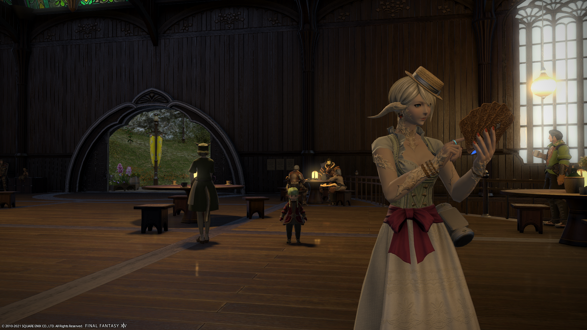 なにやら手にカードを持ってらっしゃいます。ギルドリーヴのカウンター前だったのだけど、リーヴを選んでいる時にあのカードが出るんでしょうかね?自分が受けているときは何も無いけど…ちょっとこれから観察したいと思います。
