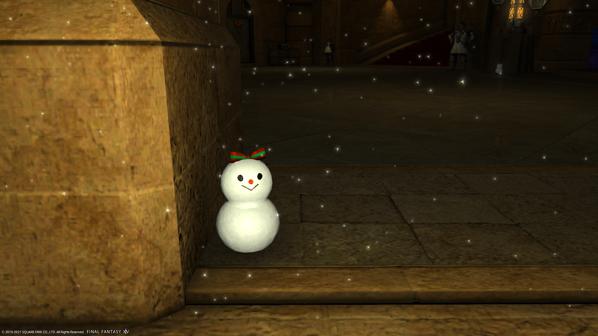 ウルダハをウロウロしていたら建物の中にひっそり雪だるまちゃんがいたりして…。
