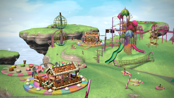 お菓子の家とか遊具とか、ドリーミング。ただ、ちょっとさみしい感じはするけど。なんだろう…木とかベンチとかそういうものがないからさみしいのでしょうかね…。単純に人もいないし。