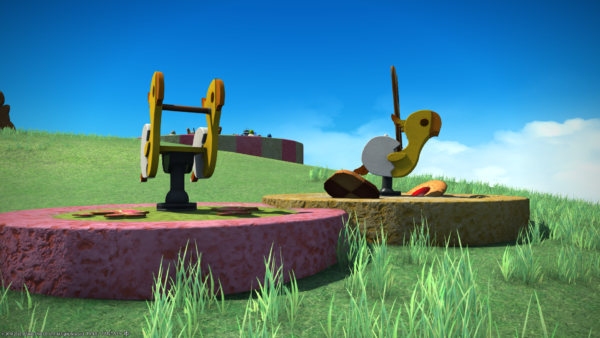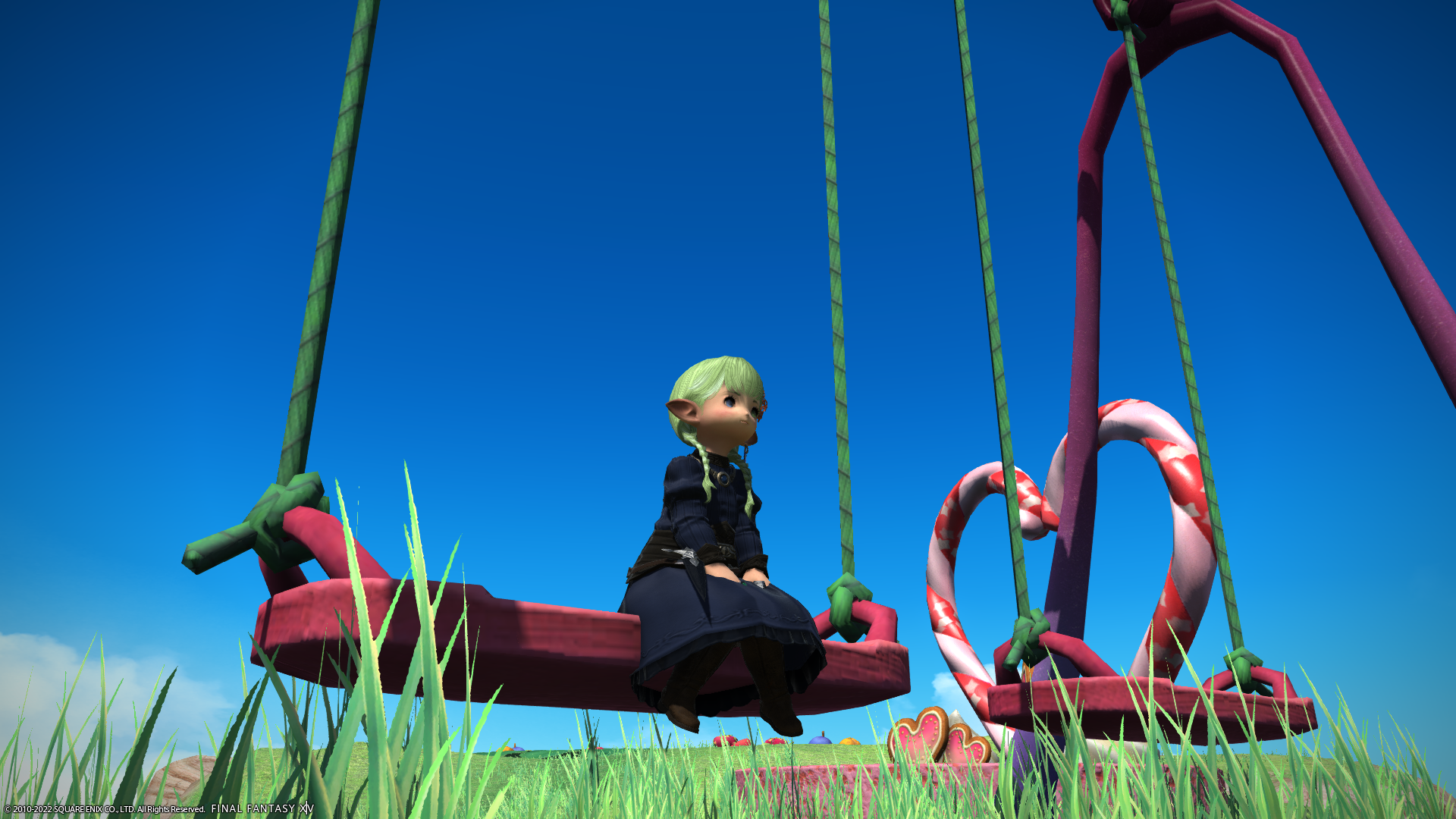 ブランコ乗ってみたけど、ララフェルだと横の紐を両手で持てない!他の種族なら、大丈夫なのでしょうか…。ちょっと大きすぎじゃぁありませんか。