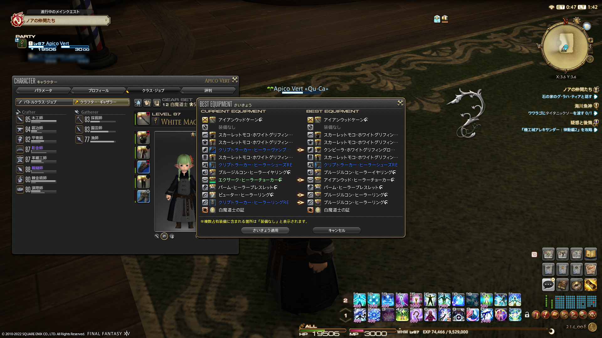 白魔道士のLvが87になりました。現在のLv上限である90に徐々に近づいております。で、ずーっと気になっていたのが装備品。なるべく、マーケットで買える適正レベルの装備品くらいは身につけておきたいなーとは思っているのですよ。