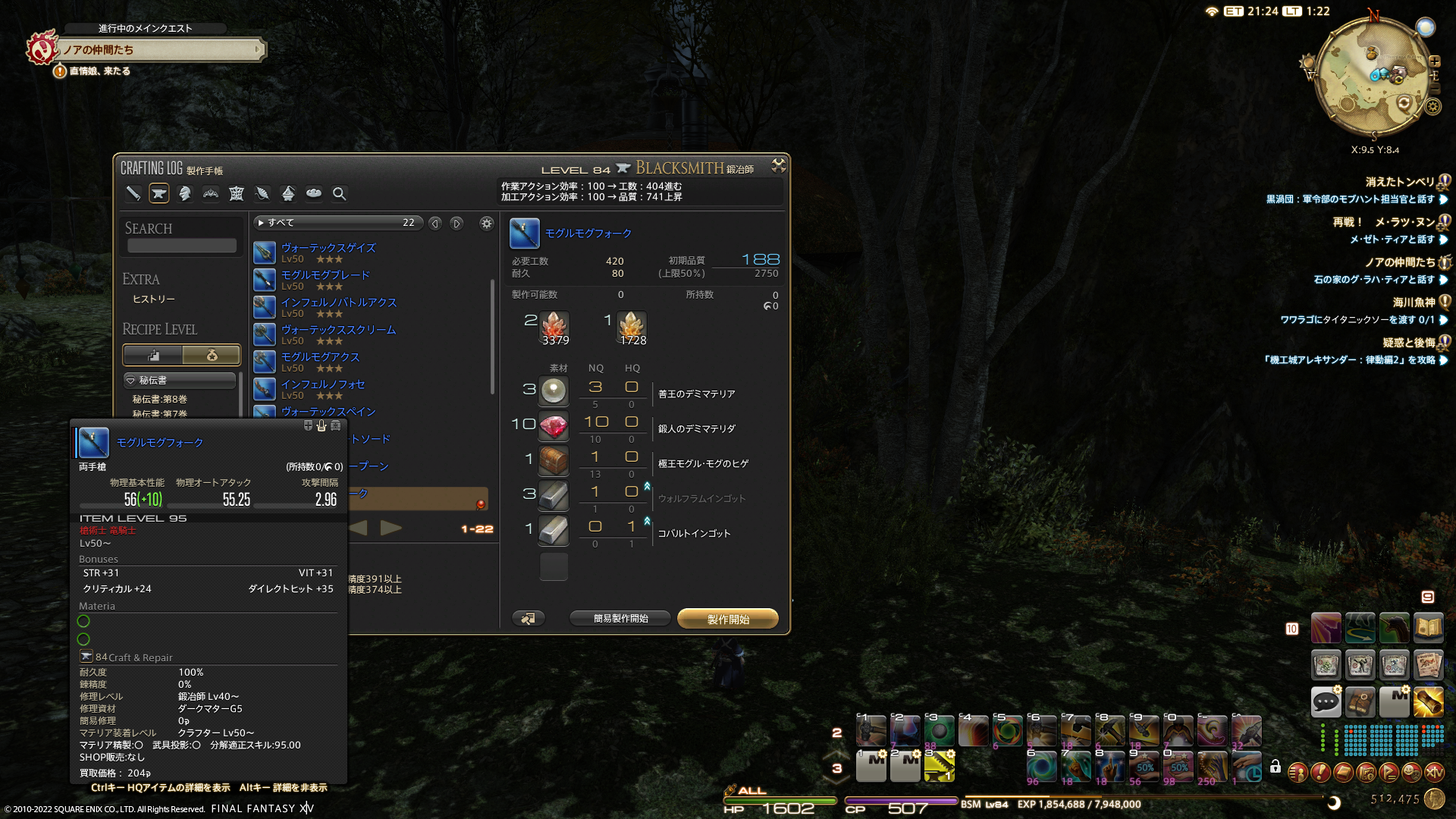光るモーグリ武器の槍、モグルモグフォークを作って王子さまに送信!