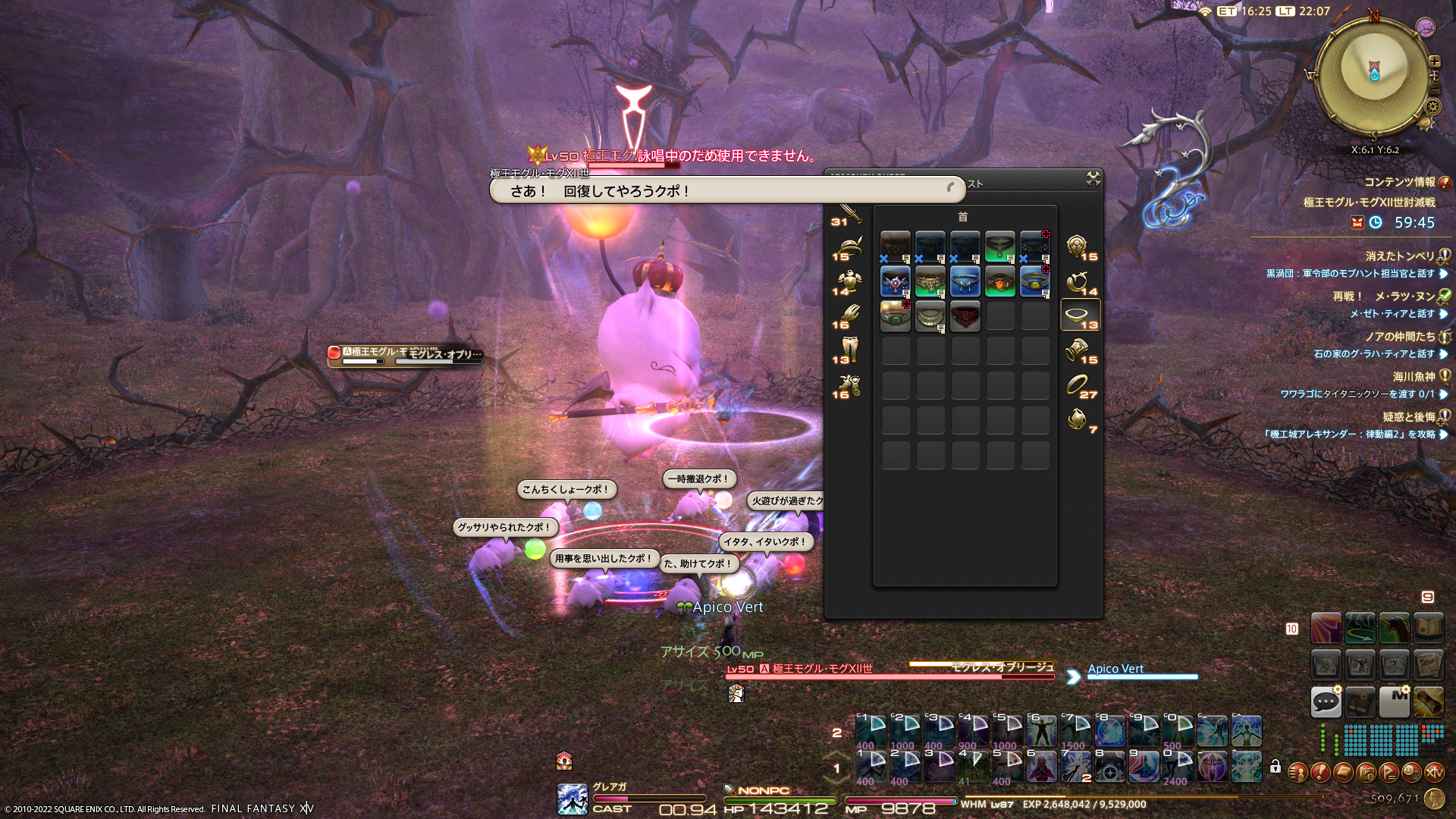 昨日、分解で得られるアイテム狙いで「極王モグル・モグXII世討滅戦」を激しく連戦いたしました。光るモーグリ武器を作るのに必要な「善王のデミマテリア」を3個集めたかったわけですが、全部で5つになったので2個余ってしまって…。