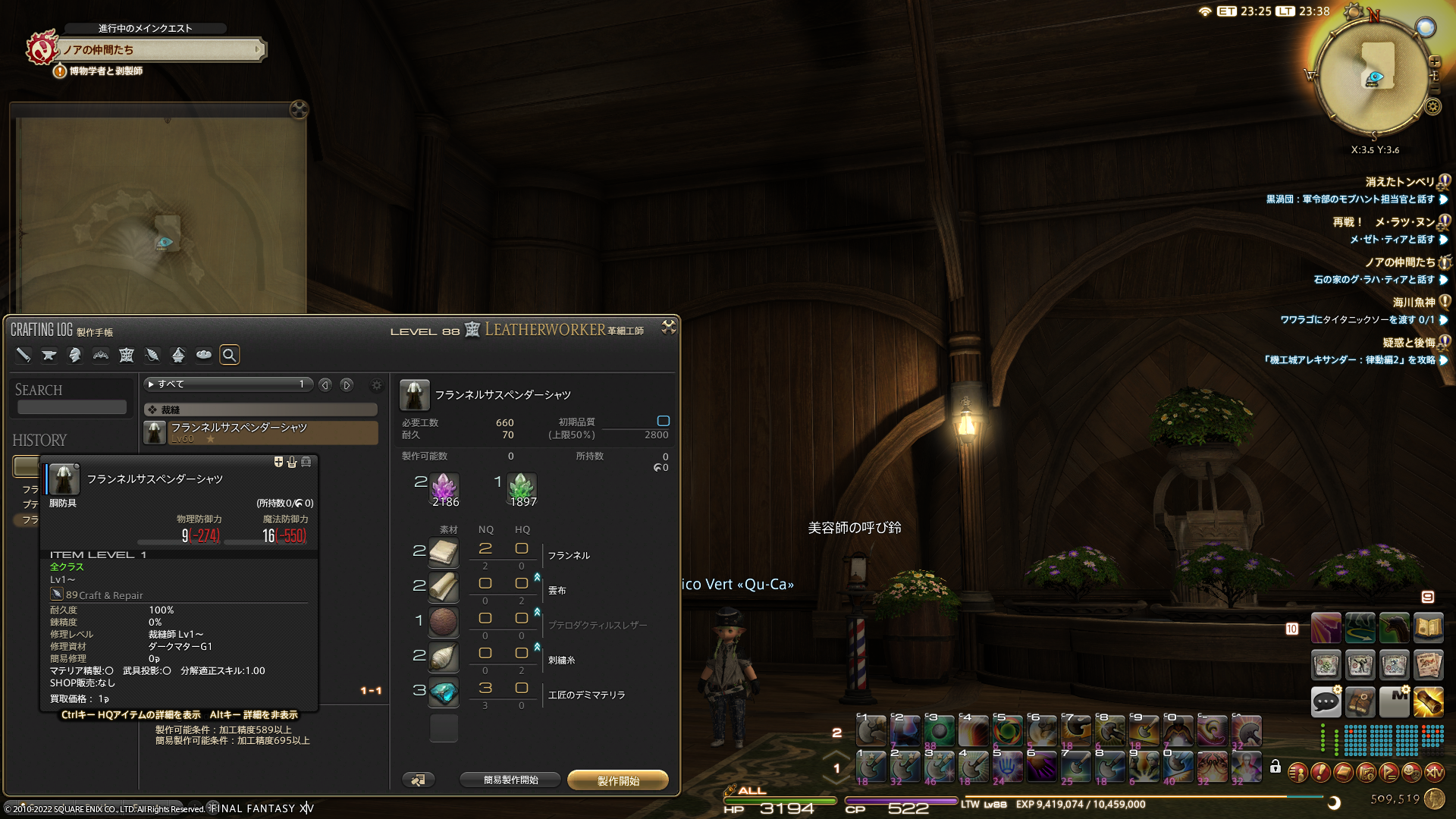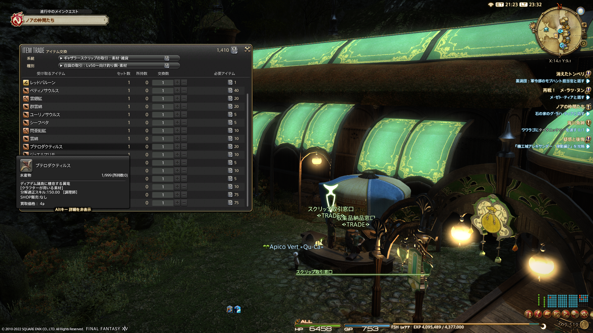 よっしゃーつくるぞー!と思って他の材料チェック。「プテロダクティルスレザー」なる謎の革が。制作方法をみると、恐竜…?しかも、水産物…?調べると、イシュガルドの蒼天街から入るディアデム諸島で釣れるそう。