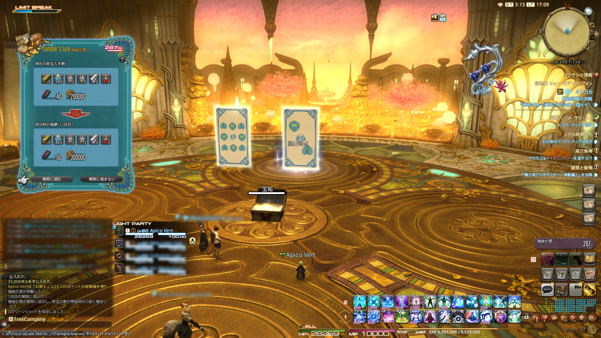 やり直しすること数回。苦戦しているところに、ログインなさったFCメンバーさんがいらしたので、お手伝いをお願いして5人になると…