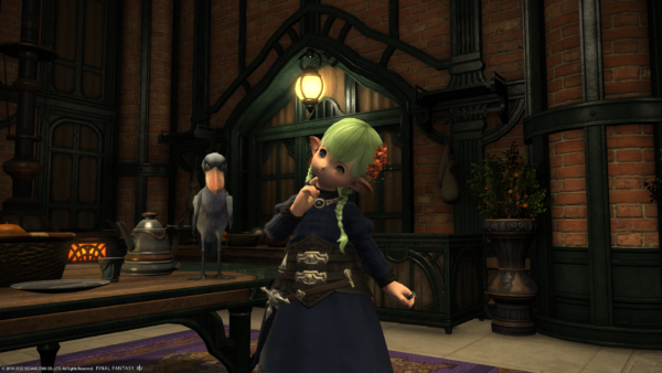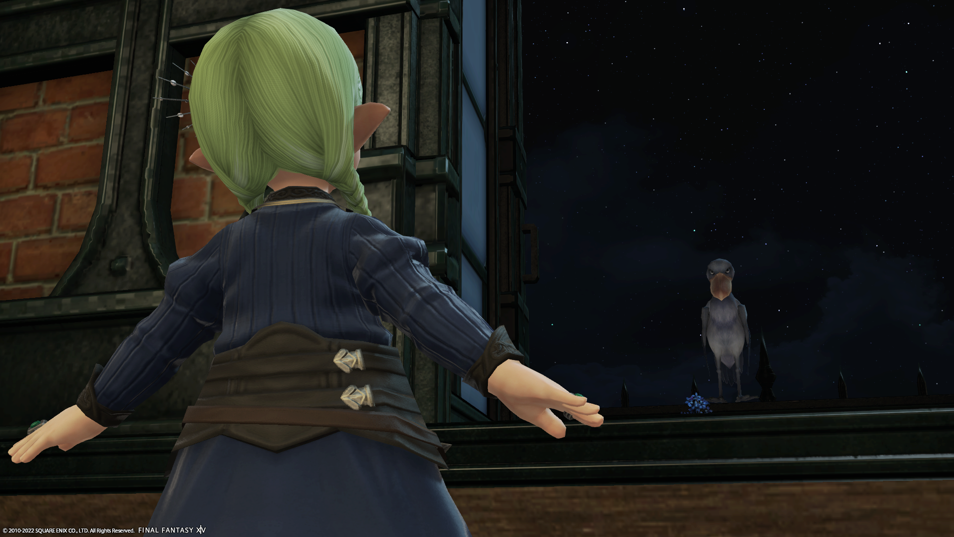 テーブルと手すりの他にも鳥さんのポジションあるのかなー?クリスタリウムの居住区に入ることがあまりないのだけれど、入った時は探してみようと思います。
