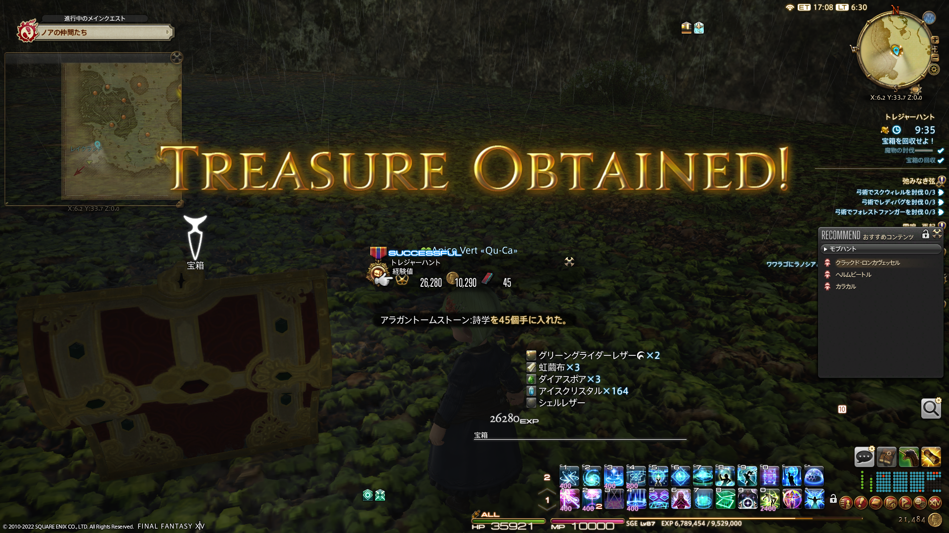 昨日も出たシェルレザー!宝の地図G11 から出るアイテムだと、これが一番高いのではないかなぁ!めっちゃラッキーです。