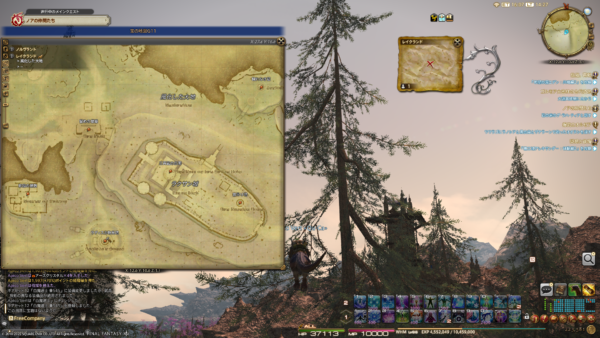 ただ、うっすら斜めの段差らしき地形がわかるので、その角度よりラクサン城の北か南かなぁという目星はつけられました。そして、ラクサン城周辺をぐるぐるしながら、地図の地形を探すのですが見つからない…。