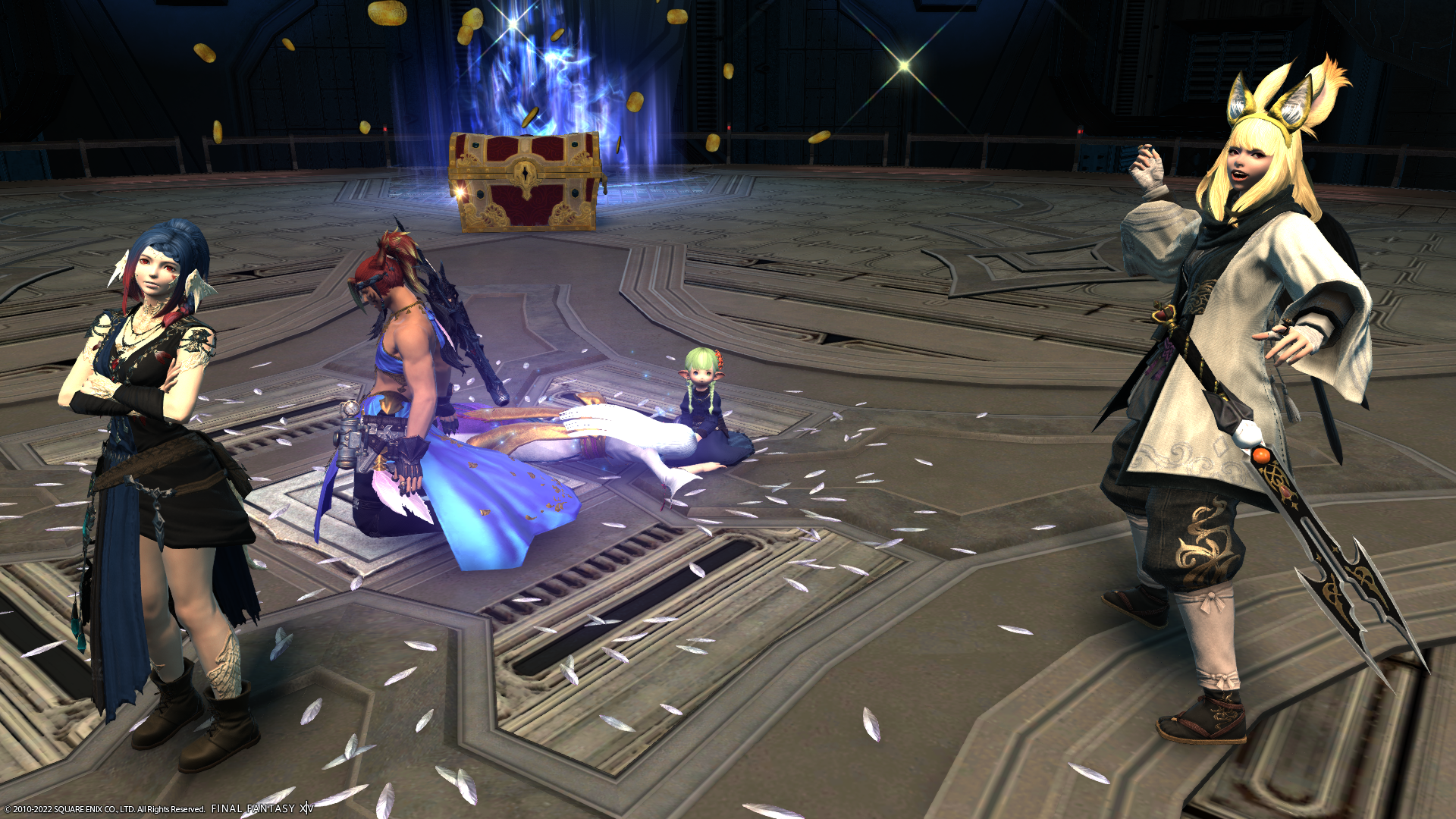 制限解除にして4人で行ったのですが、手強い…。後半の仕掛けがよくわからない分かりづらい。何度もやり直しして、最後生き残ったミコッテさんがツクヨミさんとサシで勝負して…