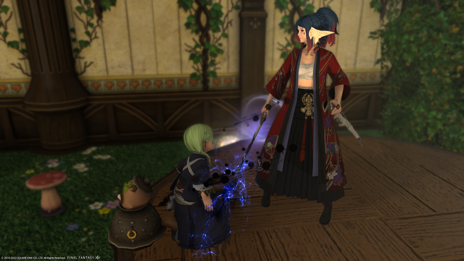 なにか墨汁の飛沫みたいなエフェクトがでてるー!このあとミコッテさんとの勝負に移行し…