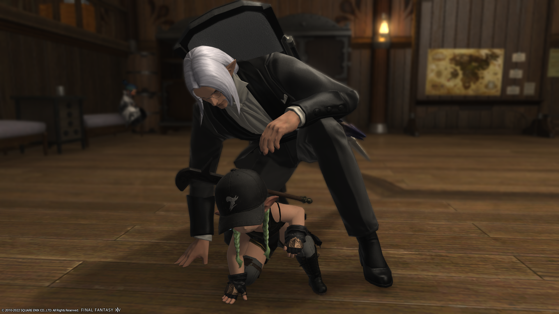 フリーカンパニーハウスのお家の個人部屋は、自分以外の人もお部屋に入れるかどうか設定できるようになっているのです。今ここで(他の人がいる状態で)、自分以外は入れない設定にしたらどうなるのかなーと思って入れないように設定にしたけど、不審者を追い出すのは無理だったようでした。すでに入っている人はそのままになるのですね。