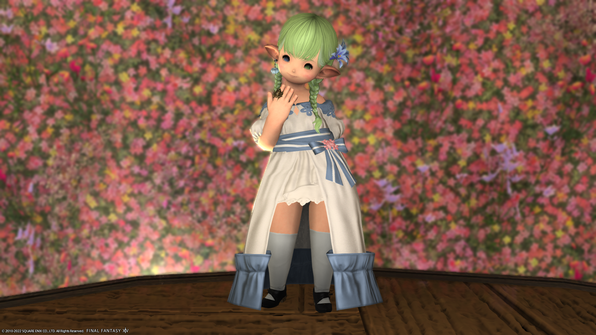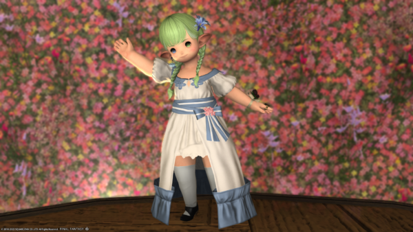 宝の地図G5のトレジャーハントで手に入れたドレス生地で作ったスプリングドレス。昨日はとりあえず着ただけだったので、ちゃんと全身コーディネイトしてみました。
