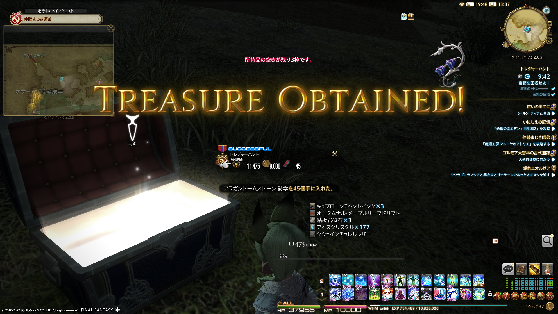 先日までは宝の地図G5のトレジャーハントをしていたのですが、本日からG9のトレジャーハントをしてみております。G9の宝箱から出る素材に、欲しいものがけっこうあるのですよねー!