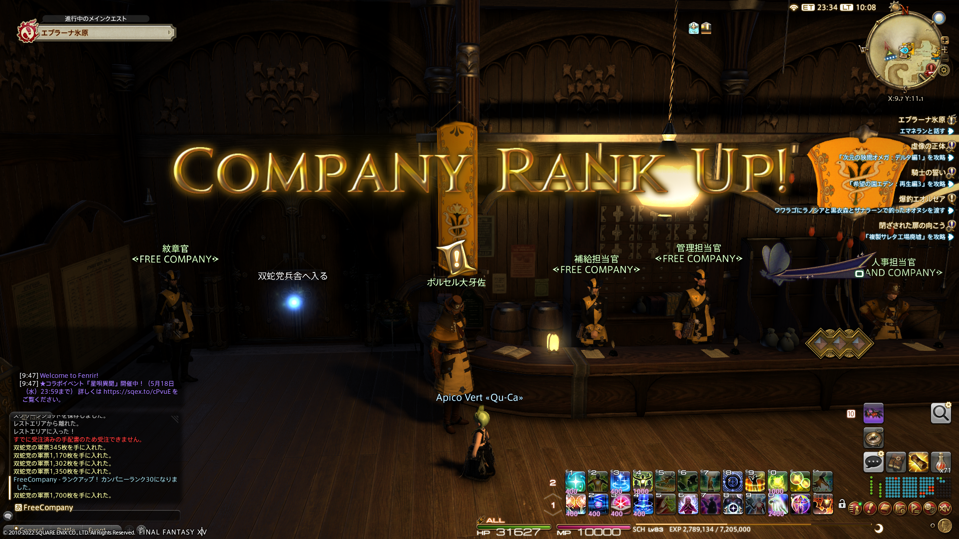 カンパニーランクが30になりました。現状30が最大みたいなのだけど、せっかくの記念なのにフリーカンパニ(FC)ーメンバーさんがだれもいらっしゃらなくて残念でした。