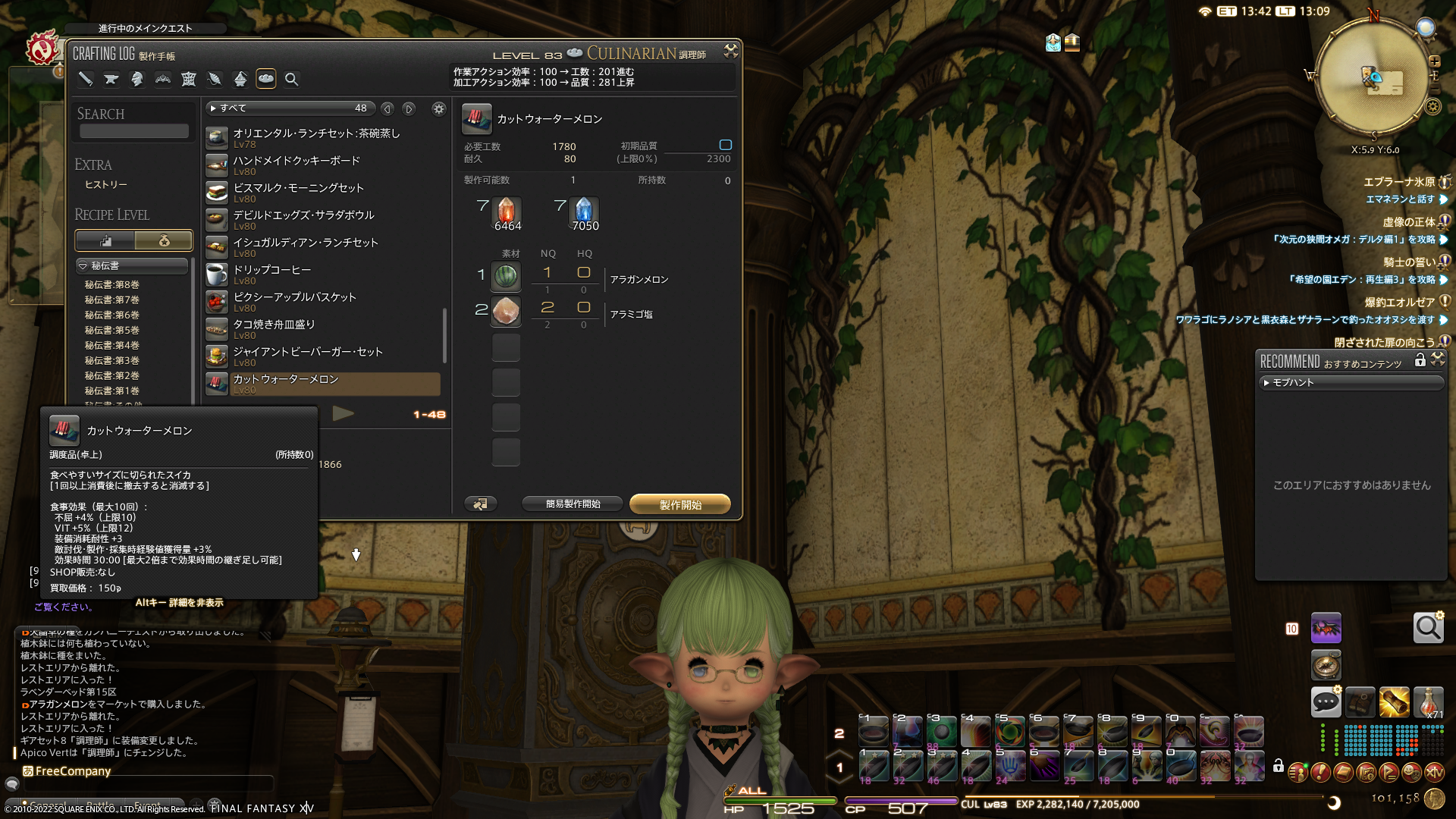 自分のお部屋の家具を揃えようと思ったのに、共用部に置く食事アイテムを作ってしまう横道…。スイカとハンバーガーは調べると食べることができます。食べるとちゃんと食事効果もあったりして。1つにつき、10回使用できるので、ちょっとしたお出かけのときはハウスの食事アイテムを食べるのもあり?