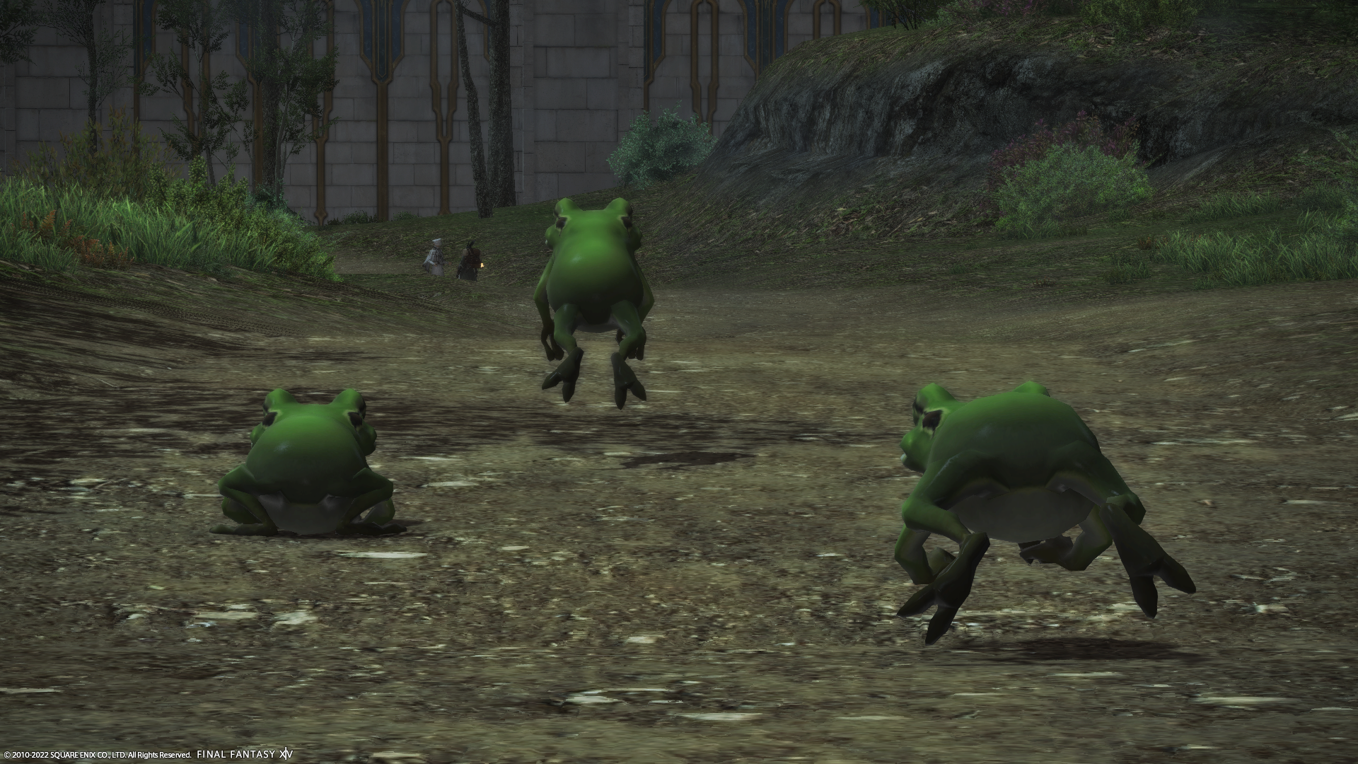 カエルになって盗み聞きを働く冒険者さんたち…めっちゃ目立ってるけど。