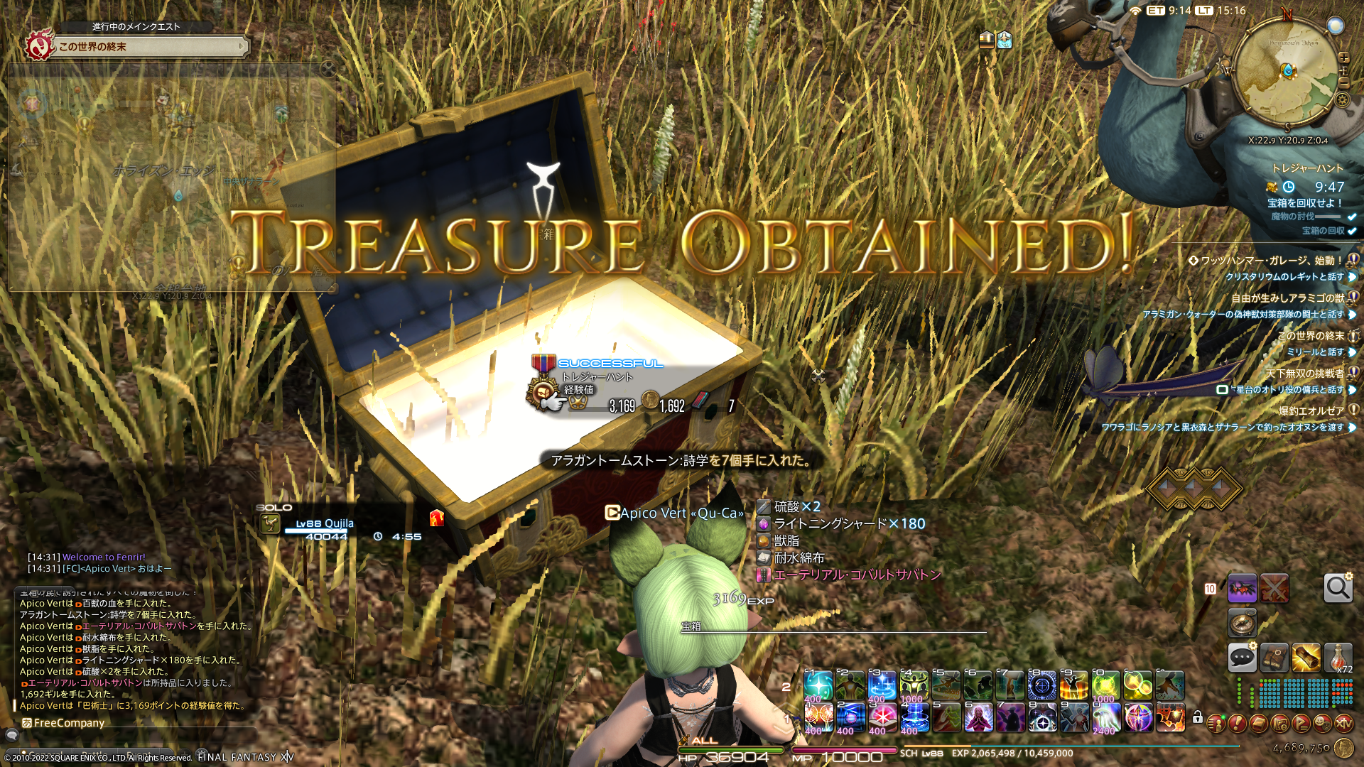 3個目の宝箱からお目当ての耐水綿布が!これ、セーラーシャツなどのおしゃれ装備の材料でもあるのだけど、ハウジングのビーチチェアという庭具の材料でもあるのです。