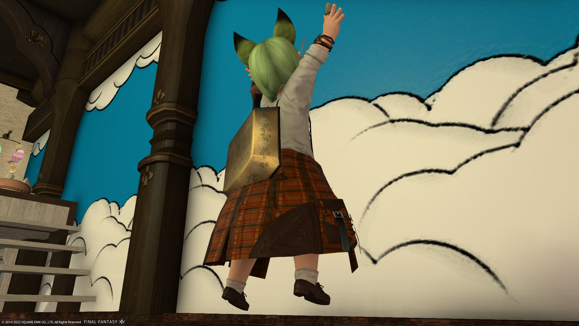 ちなみに、アウラさんに渡すまえに、作ったスカートを自分でもはいてたミコッテさんでした。※写真はあえて載せません。