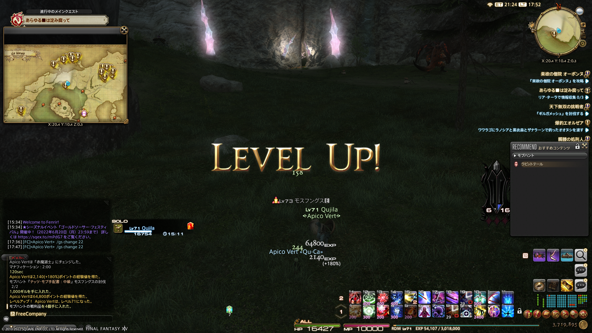 Lvがちょっと高すぎるなぁというときは他のジョブで倒したり。複数匹倒すように指定されているモブは、最後の1だけ赤魔道士で倒して報酬をもらったり。
