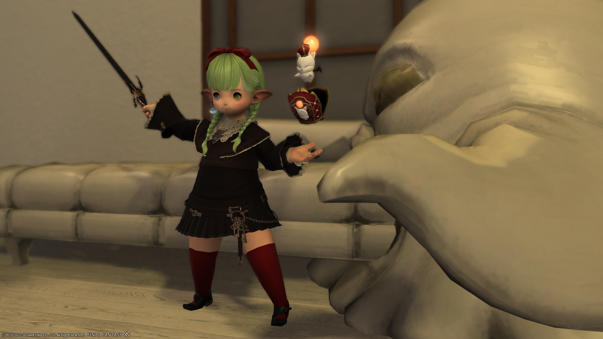 裾のレースがチラ見えするのがポイント…?赤魔道士っぽくはないけど、個人的にはしっくりくる感じにはなりました。