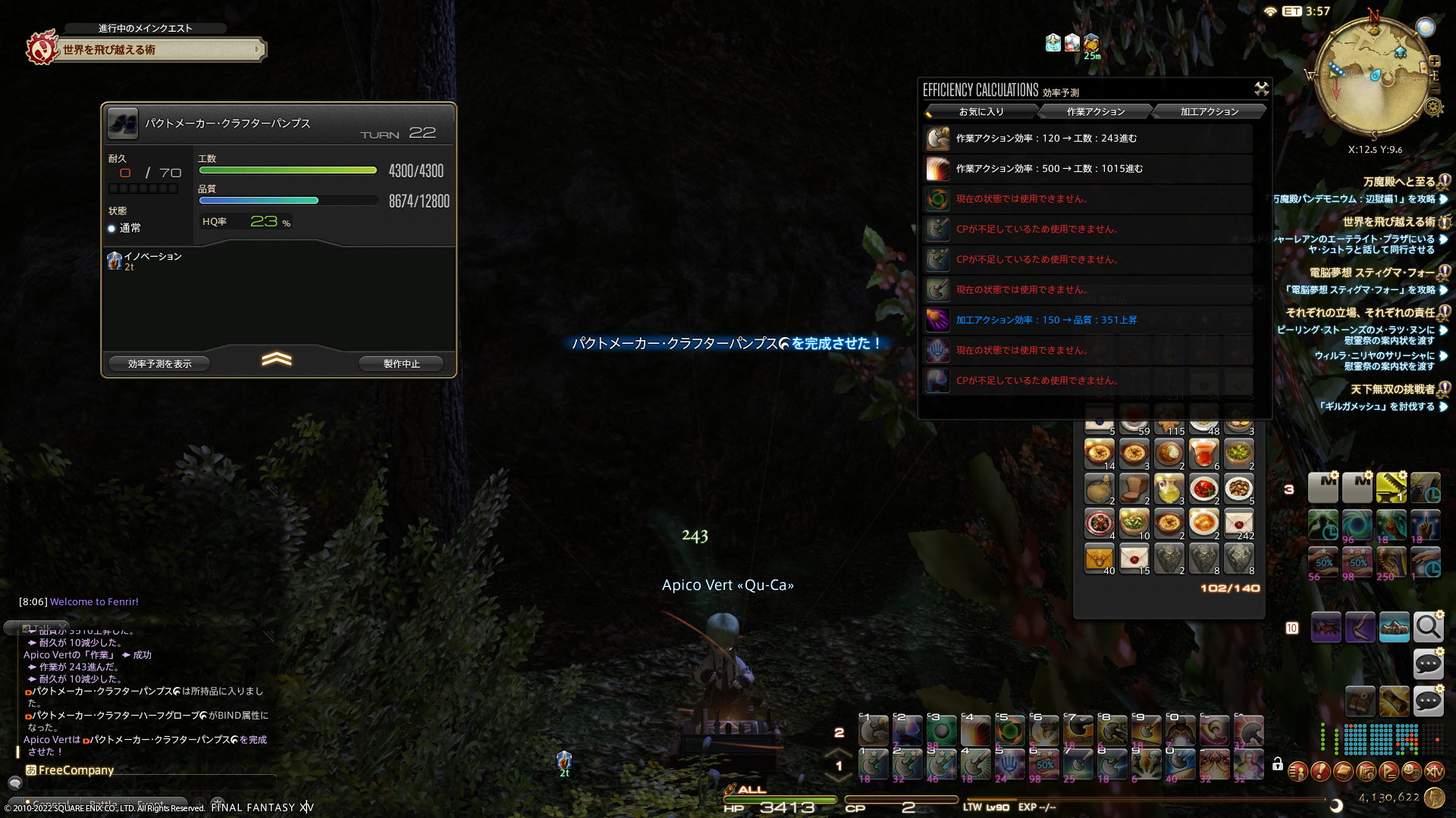 足装備はあまりHQ率を上げられなくて失敗した(NQになっちゃったか)なーとか思ったけど、HQになってラッキーでした。