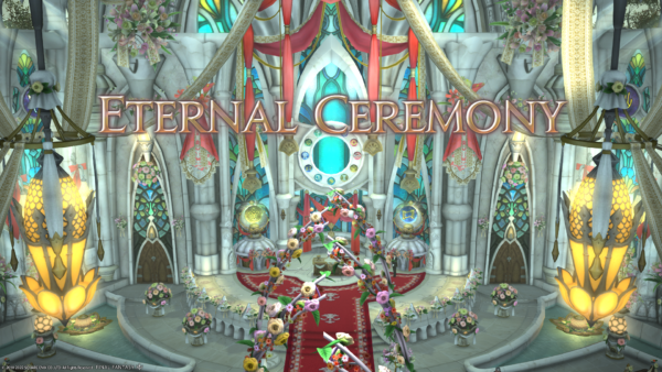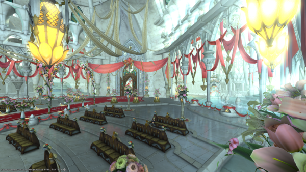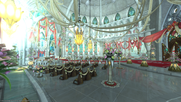 こちら、エオルゼアの挙式であるエターナルバンドの来賓控室であります。