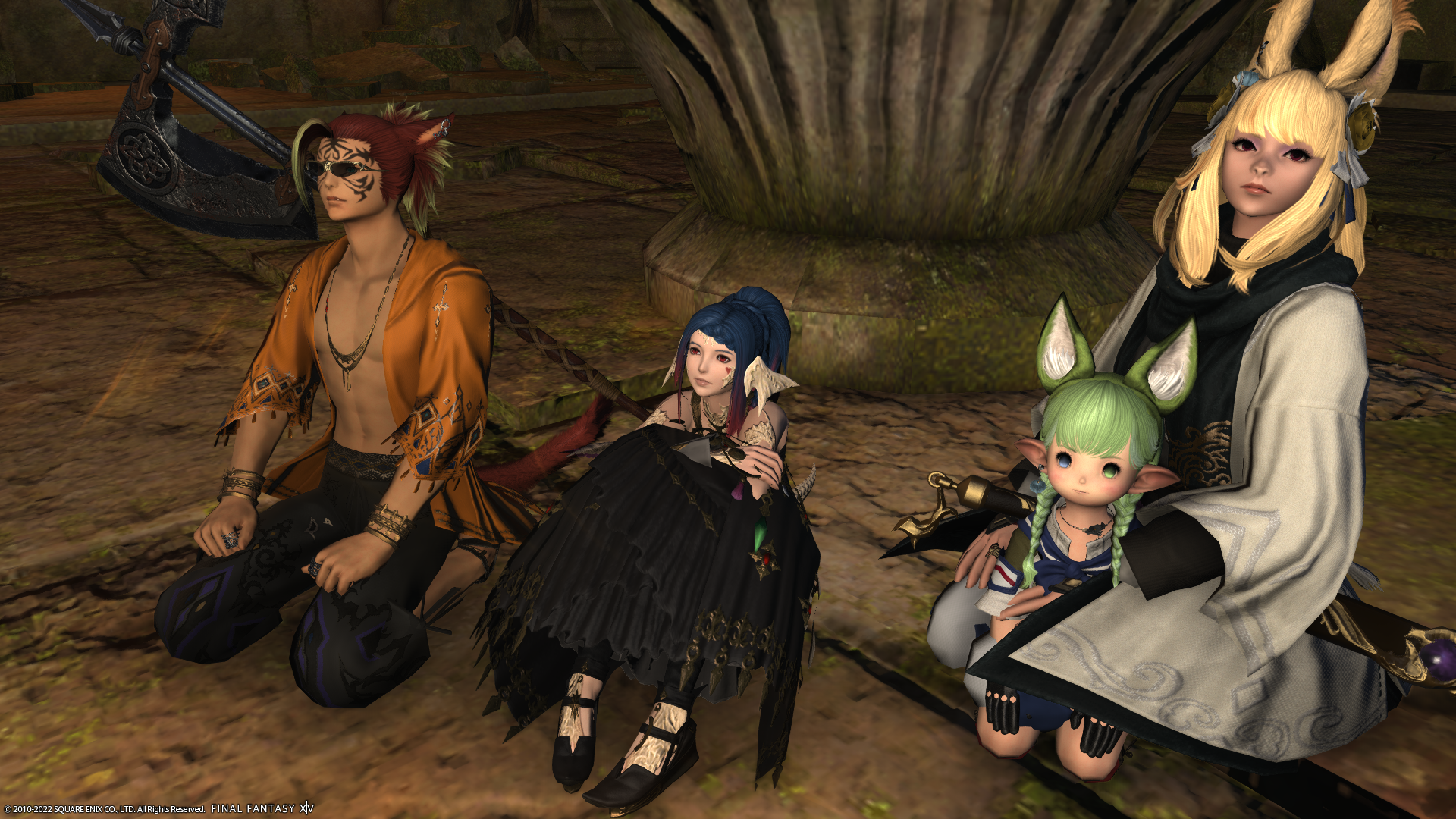 真ん中のララフェルちゃんがFCメンバー倉庫ちゃん。
