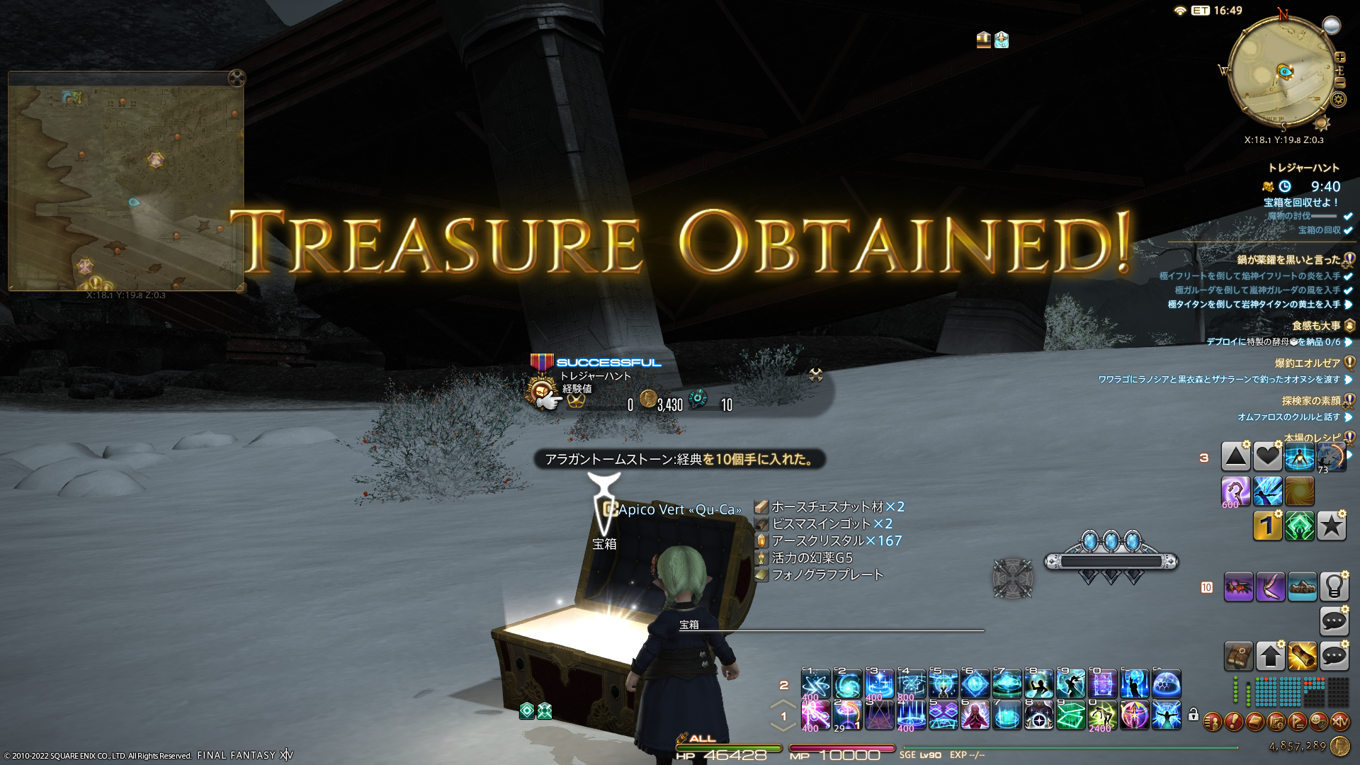 今までなんとなく選択肢に入れていなかった宝の地図G13。暁月エリアのソロ向けのトレジャーハントなので、敵が強くて負けちゃったらどうしようとか思っていたのですが、一度試してみようと。
