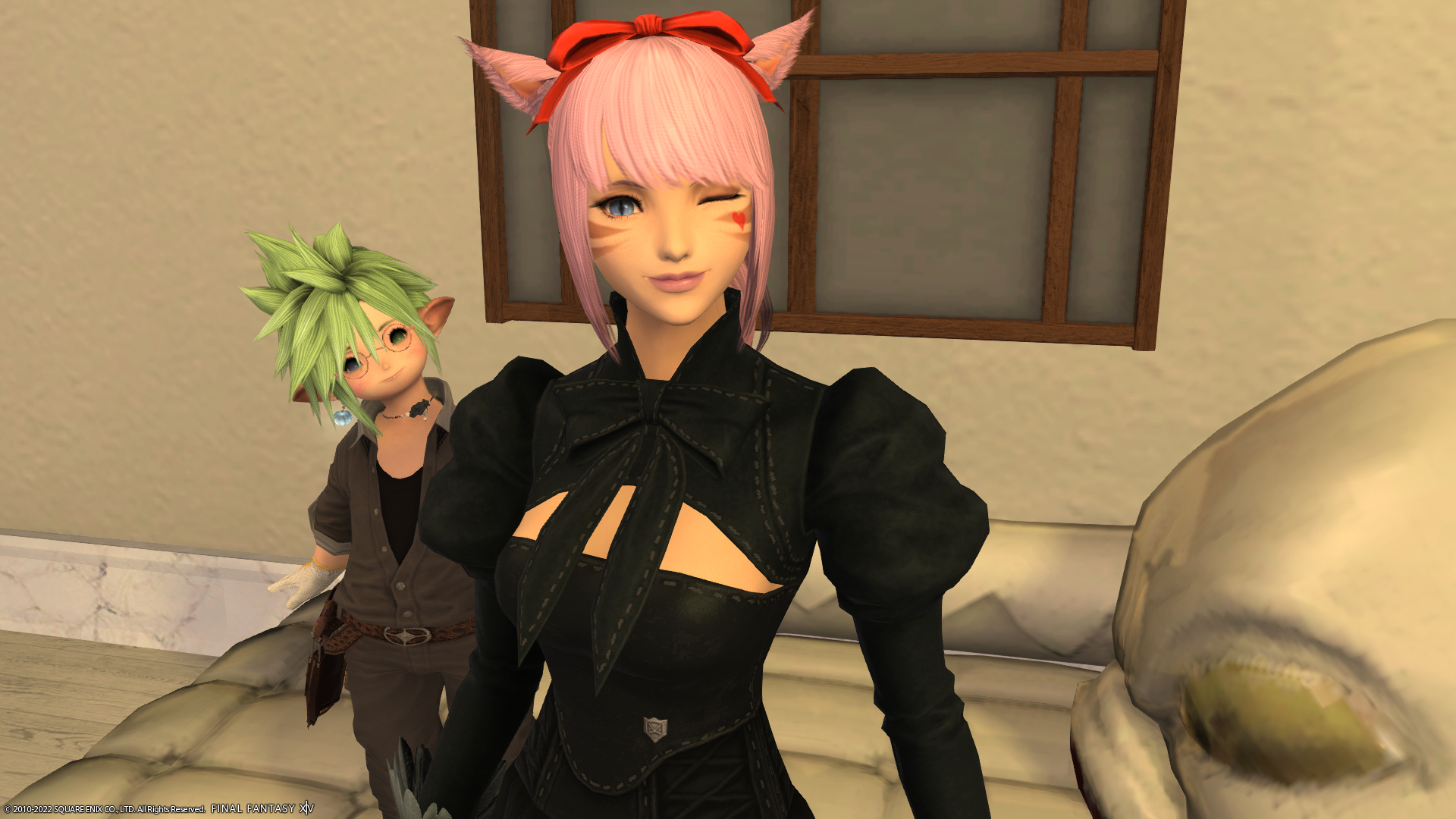そしてフリーカンパニーメンバーさんのお手伝い後の撮影では、ばっちりウィンクのあざといミコッテちゃんでした。