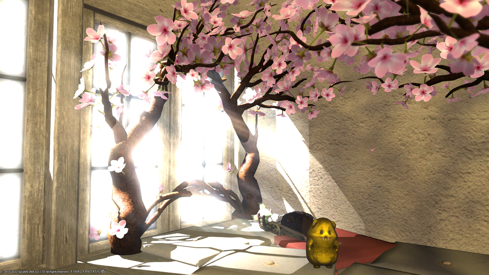 桜の花びらが降る中、ごろごろお昼寝できるゾーンを作ってみました。