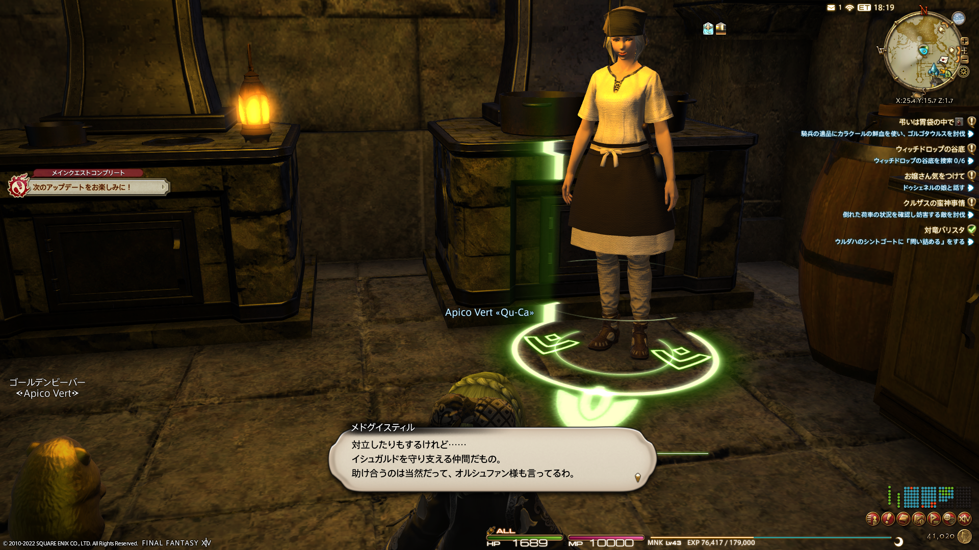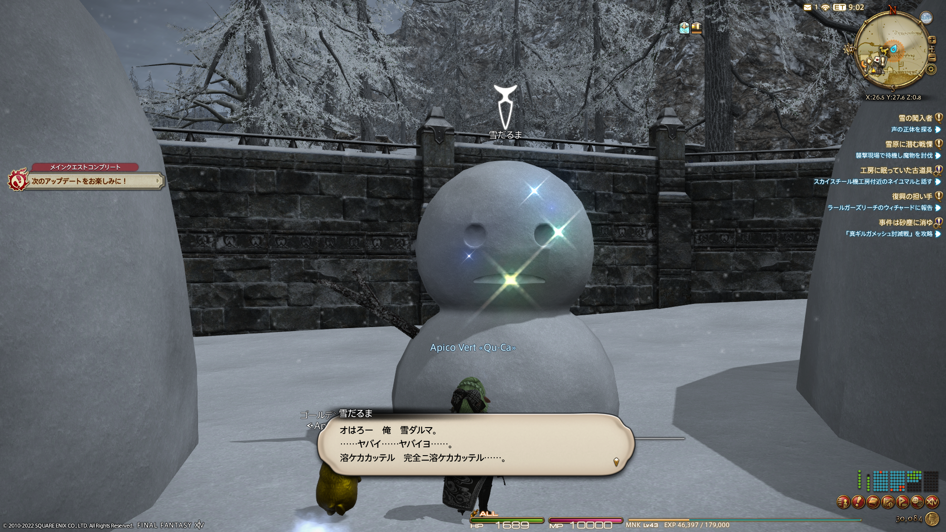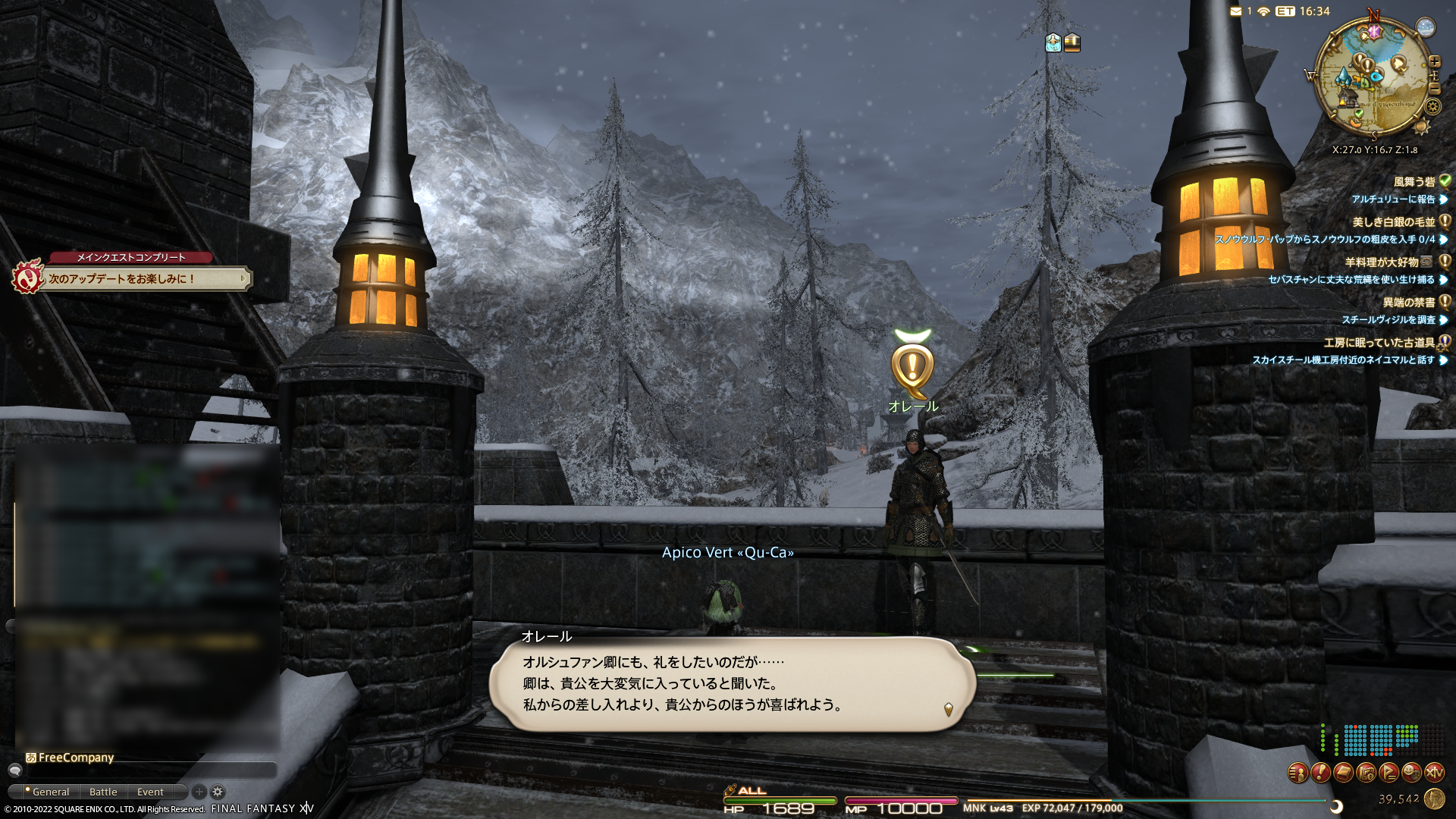 こういうところ、FF14は時々辻褄が合っていないところがあるなーと思います。進行に応じてクエスト内容が変わらないのか、NPCの言動や振る舞いに違和感を感じることがちょくちょくあります。