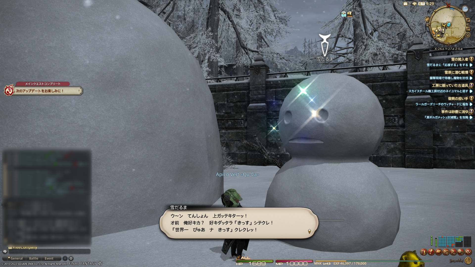 FF11はそういうところしっかり作ってあった気がしたので余計気になってしまって。FF11だと進行状況など条件によってクエストのセリフが変わる的な。シナリオに関しては、FF11はほんとよく作ってあると思います。