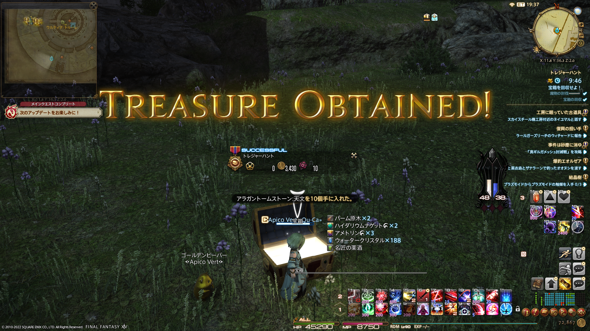 昨日受けたクルザス中央高地のクエストの続きをしておりましたら…