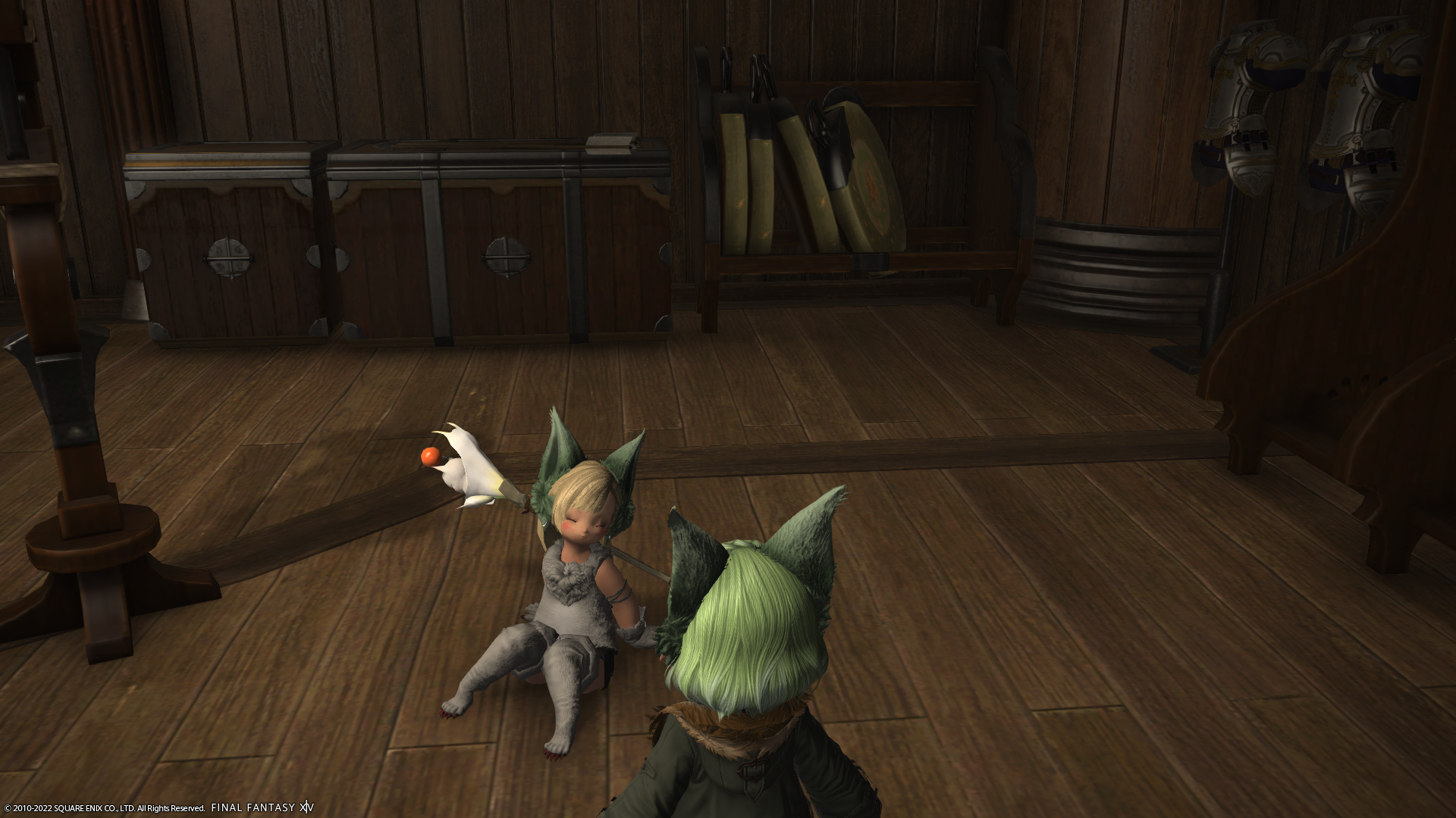 冒険者小隊の控室に入ると、ララフェルたちの引率の先生こと、ムーリエルさんがたそがれておりましたので…