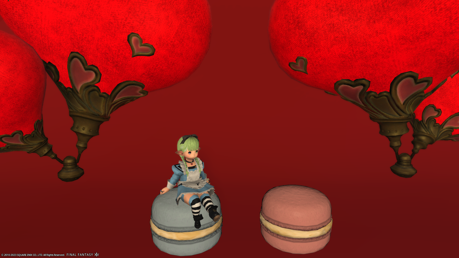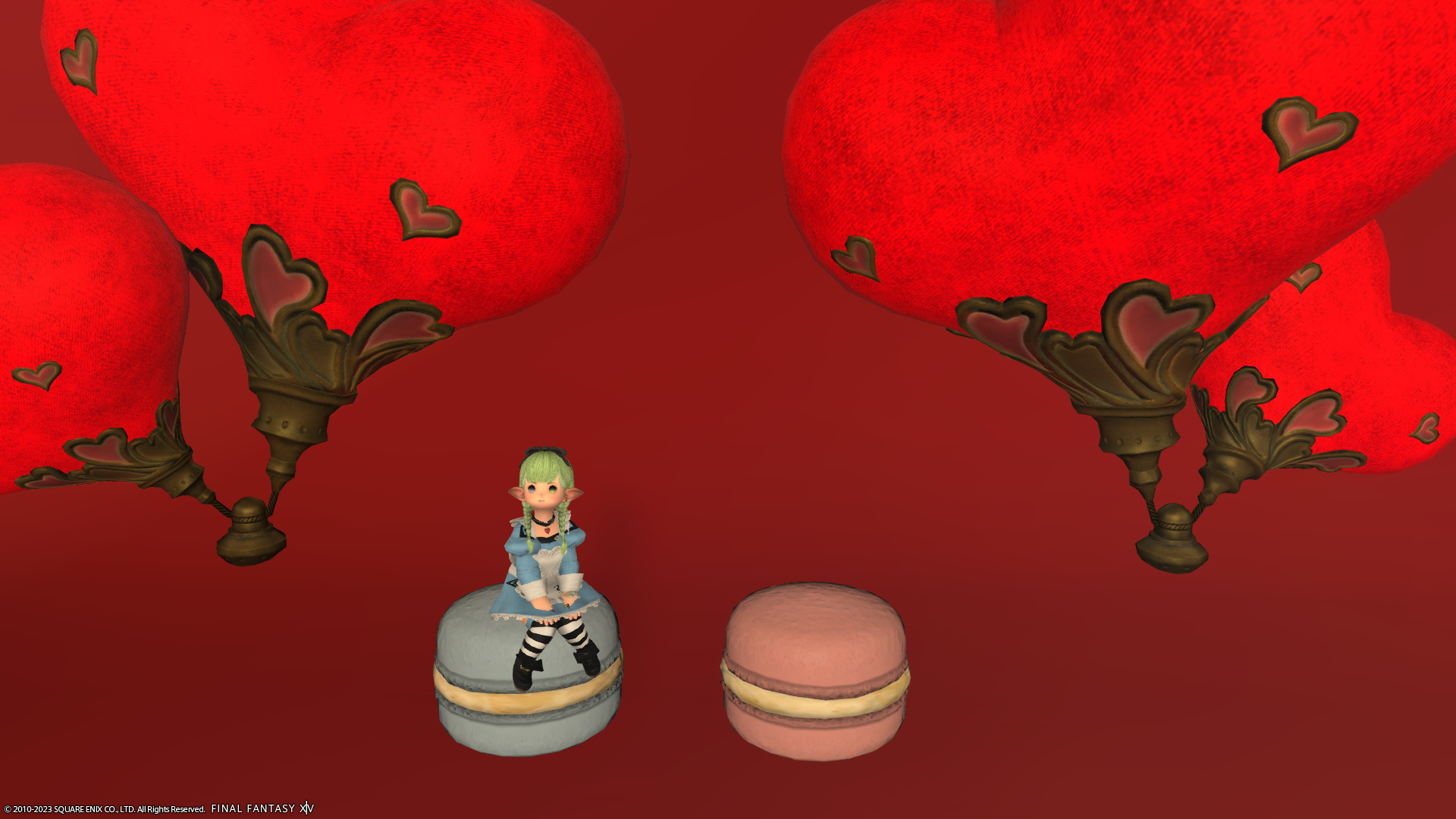 撮影コーナーのハートのバルーンやマカロンクッションの位置を調整してみたりしてました。一見どこから見ても同じっぽいマカロンクッションだけど、位置によって座れる方向が違うのですねー。