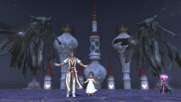わたくし(左)とあざといミコッテさん(右)で王子を取り合う図式のロールプレイをしています。