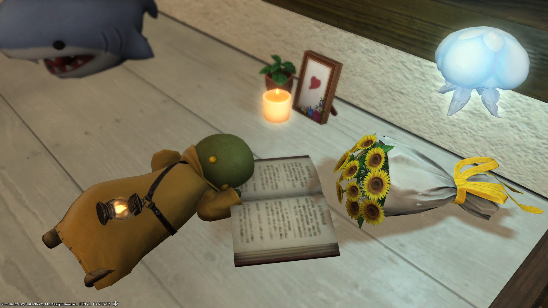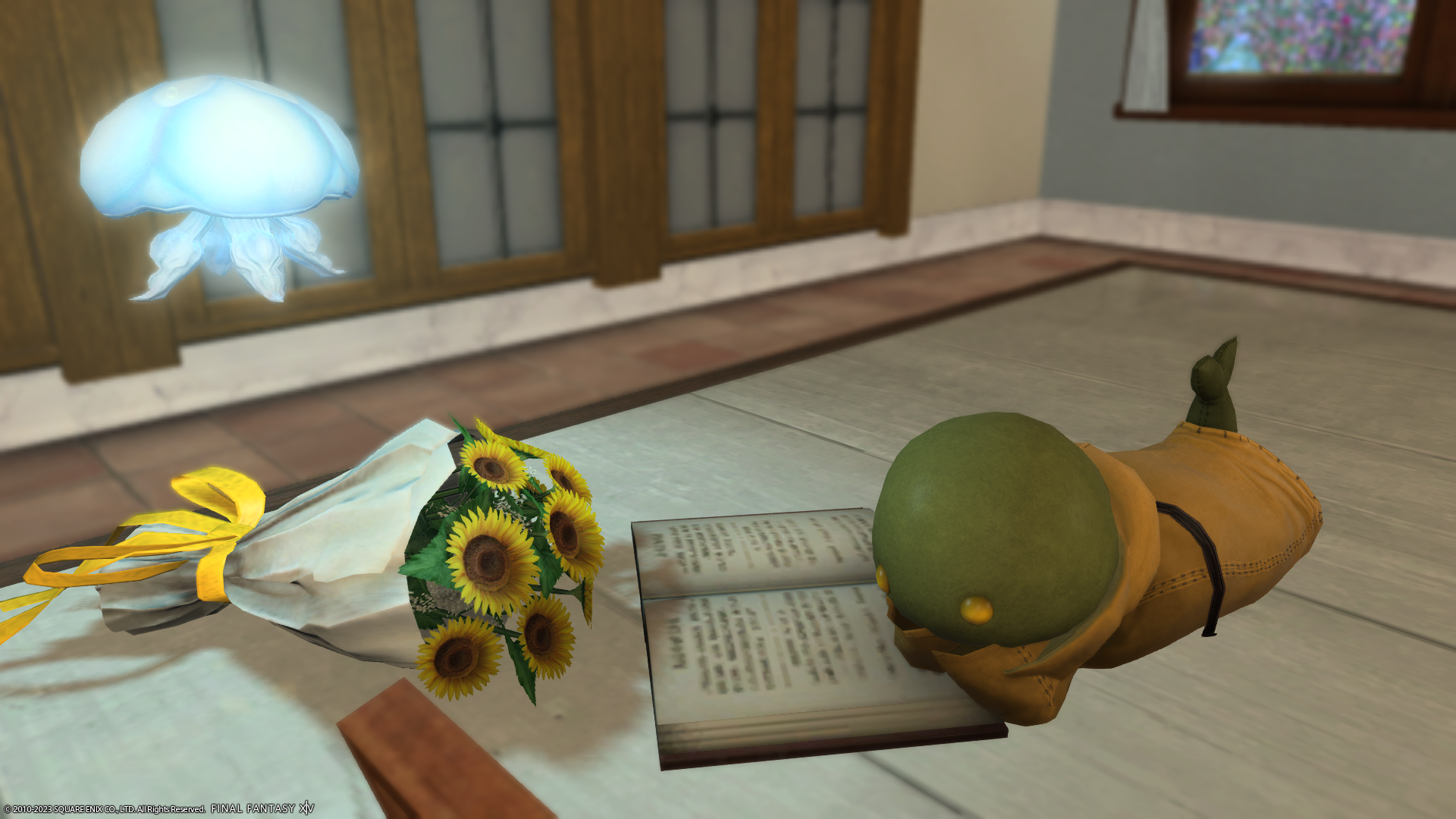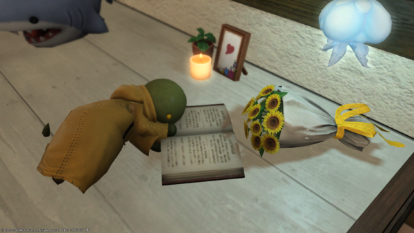寝転がって本を読むトンベリさん。