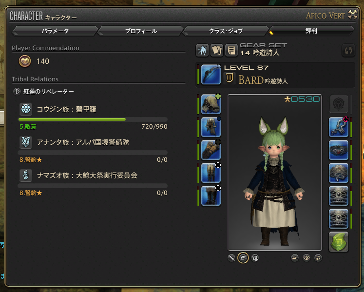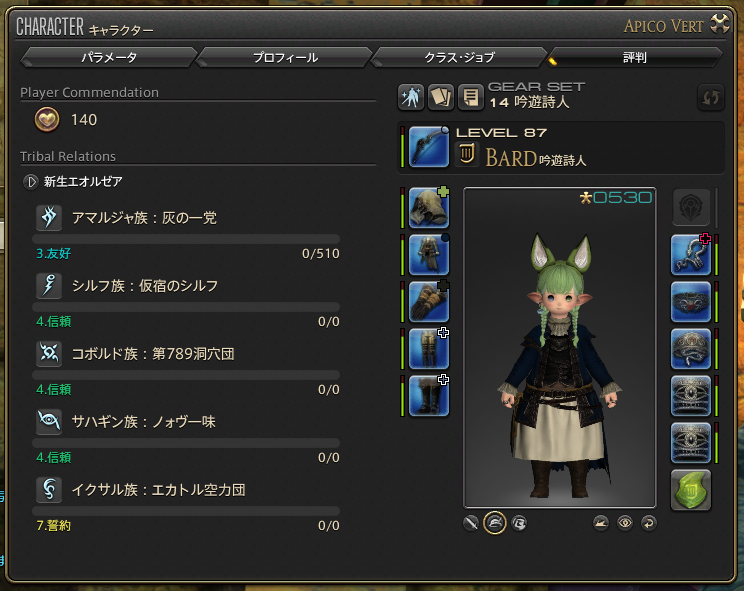 わたくしの現在の友好部族クエストの友好度はこんな感じ。
