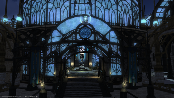 クリスタリウムの建物の入り口のゲートの上、後ろに見えているのはエーテライト。