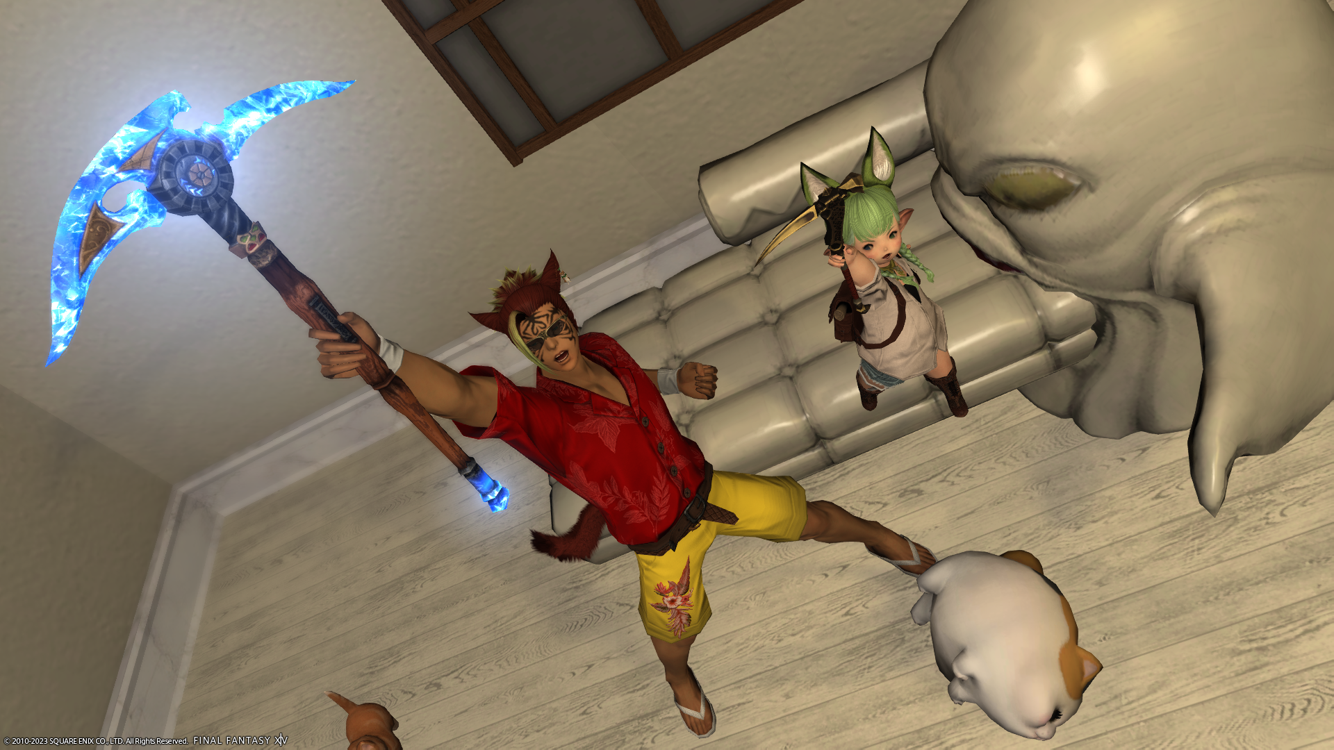 わたくし普段はマテリア精錬用にLv80装備を愛用しているので、Lv90装備の出番はあまりないので、作っても荷物になっちゃいそうで…。クラフターのLv90伝説装備も一応全部作ったのだけど、マテリア禁断しないとそれまで使ってたLv90装備より性能が悪くなっちゃうので、せっせとマテリアを自調達しているところだったり。