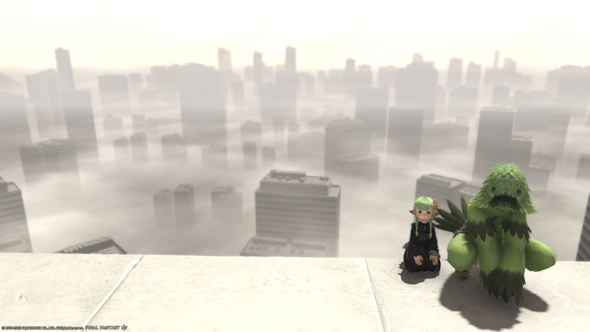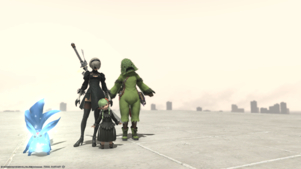 お付き合い頂いてるフリーカンパニーメンバーの草人さん(ミコッテさん)曰く、攻略中に出てくるビルはスクエニ本社だとか…。よく見ると書いてあるそうだけどそんな余裕ないよー。